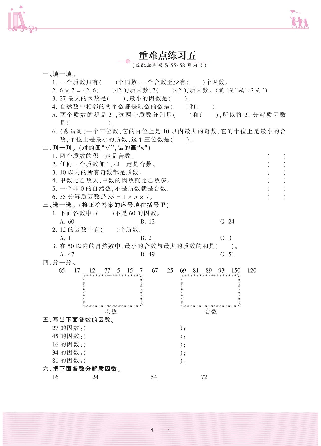 2020上册四年级数学冀教版 五 倍数和因数——重难点练习五