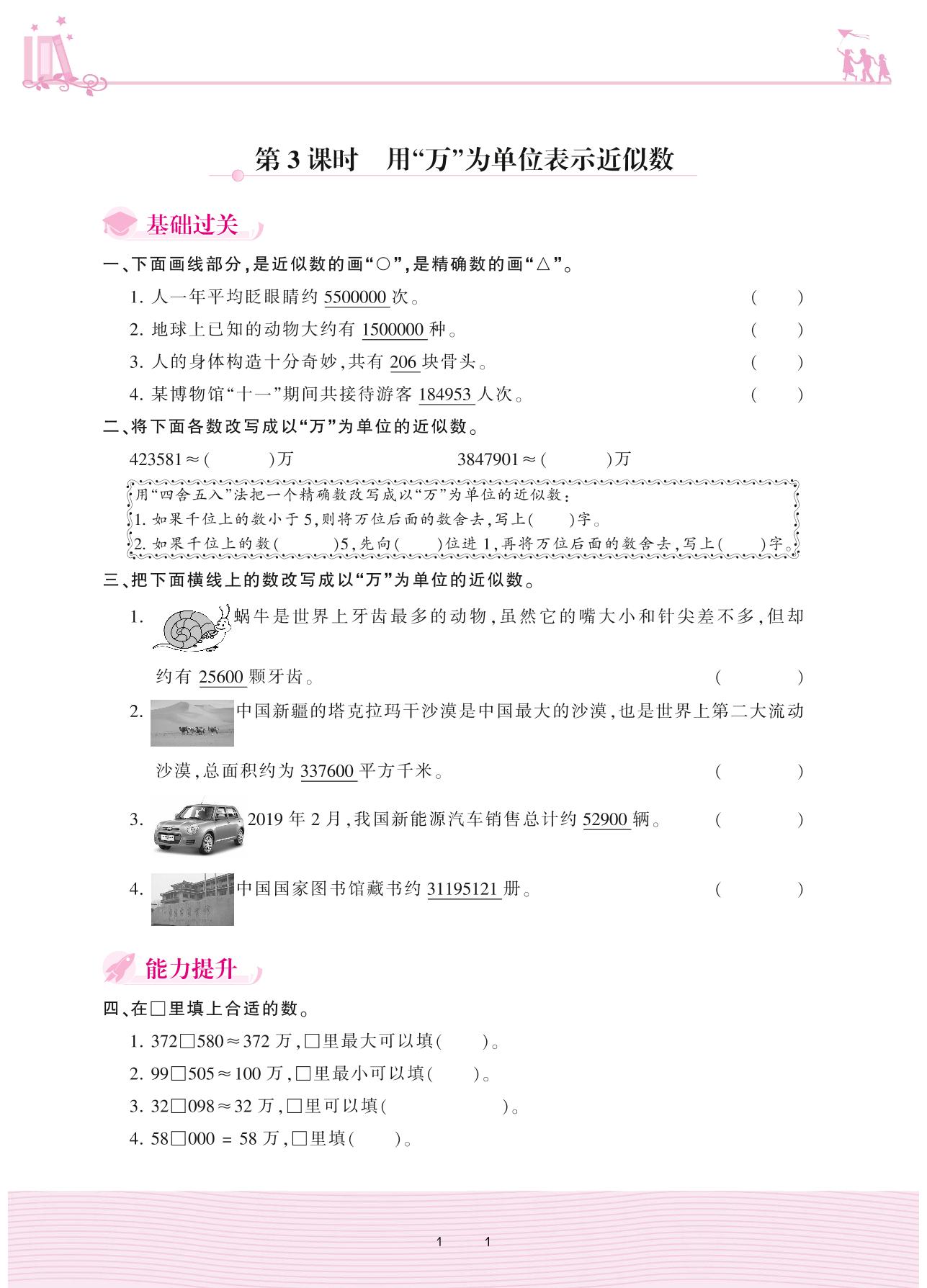 2020上册四年级数学冀教版 六 认识更大的数 2. 亿以内的数——第3课时 用“万”为单位表示近似数