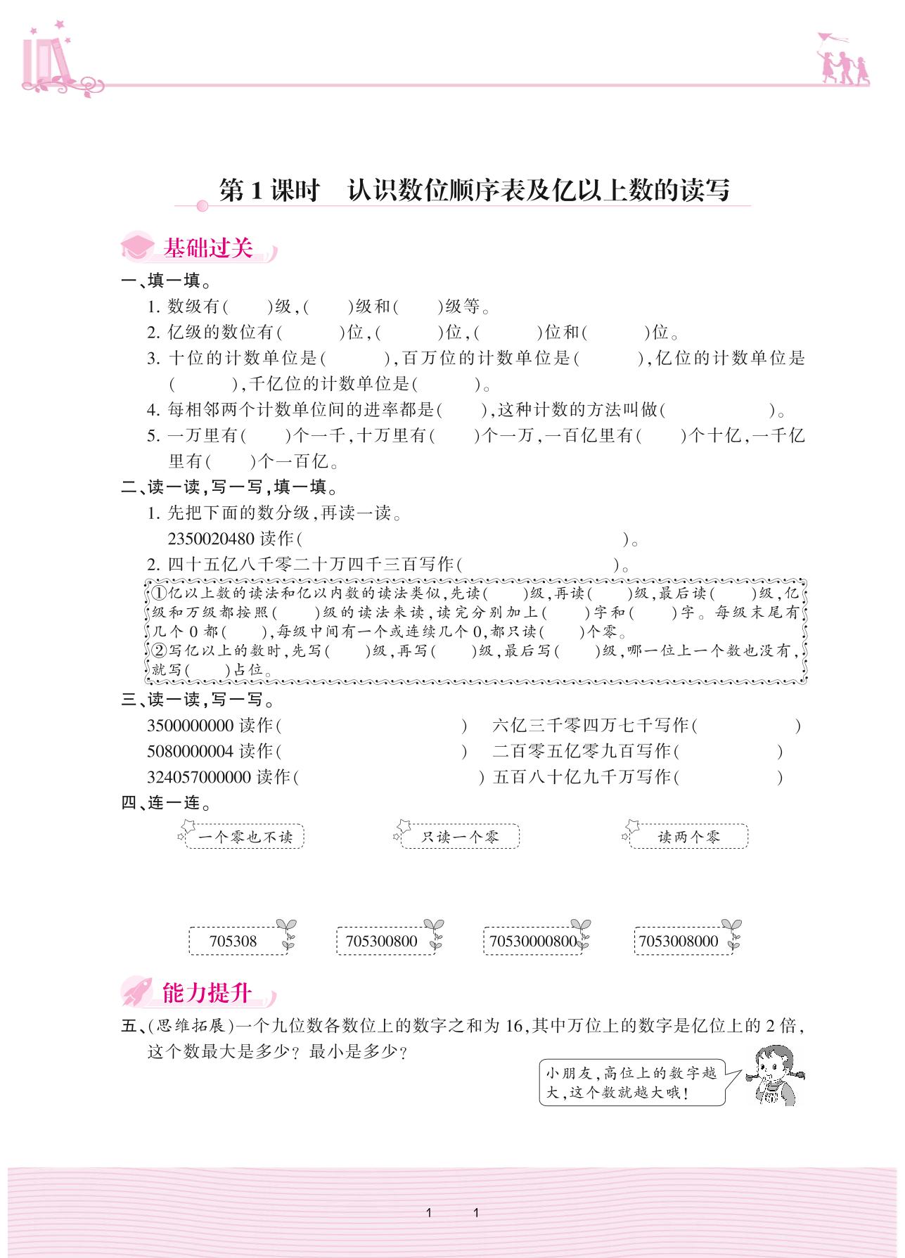 2020上册四年级数学冀教版 六 认识更大的数 3. 亿以上的数——第1课时 认识数位顺序表及亿以上数的读写