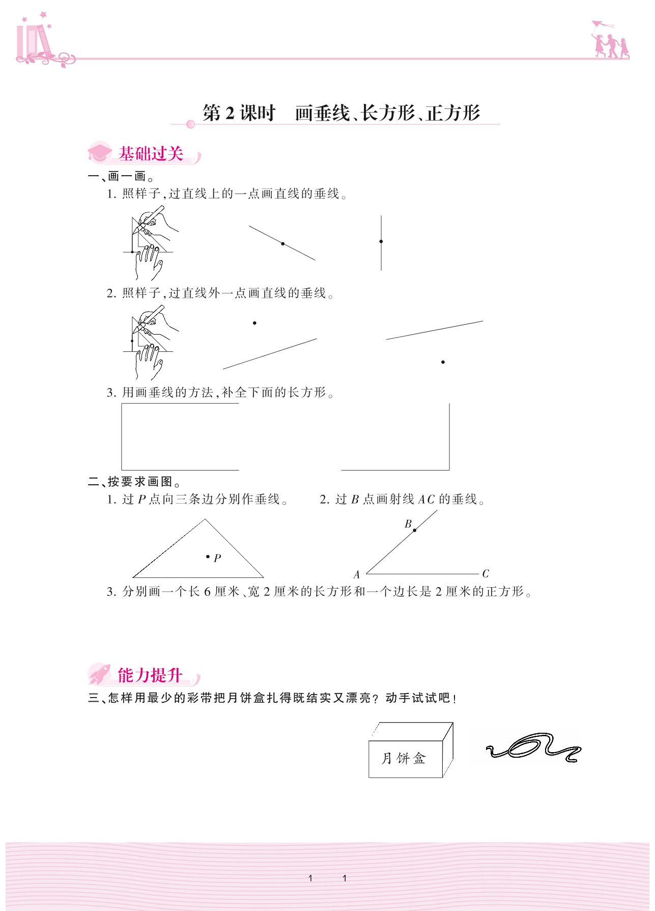 2020上册四年级数学冀教版 七 垂线和平行线 1. 垂线——第2课时 画垂线、长方形、正方形