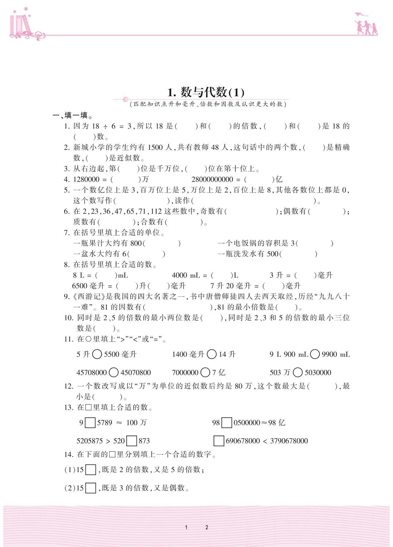 2020上册四年级数学冀教版 整理与评价——1. 数与代数(1)