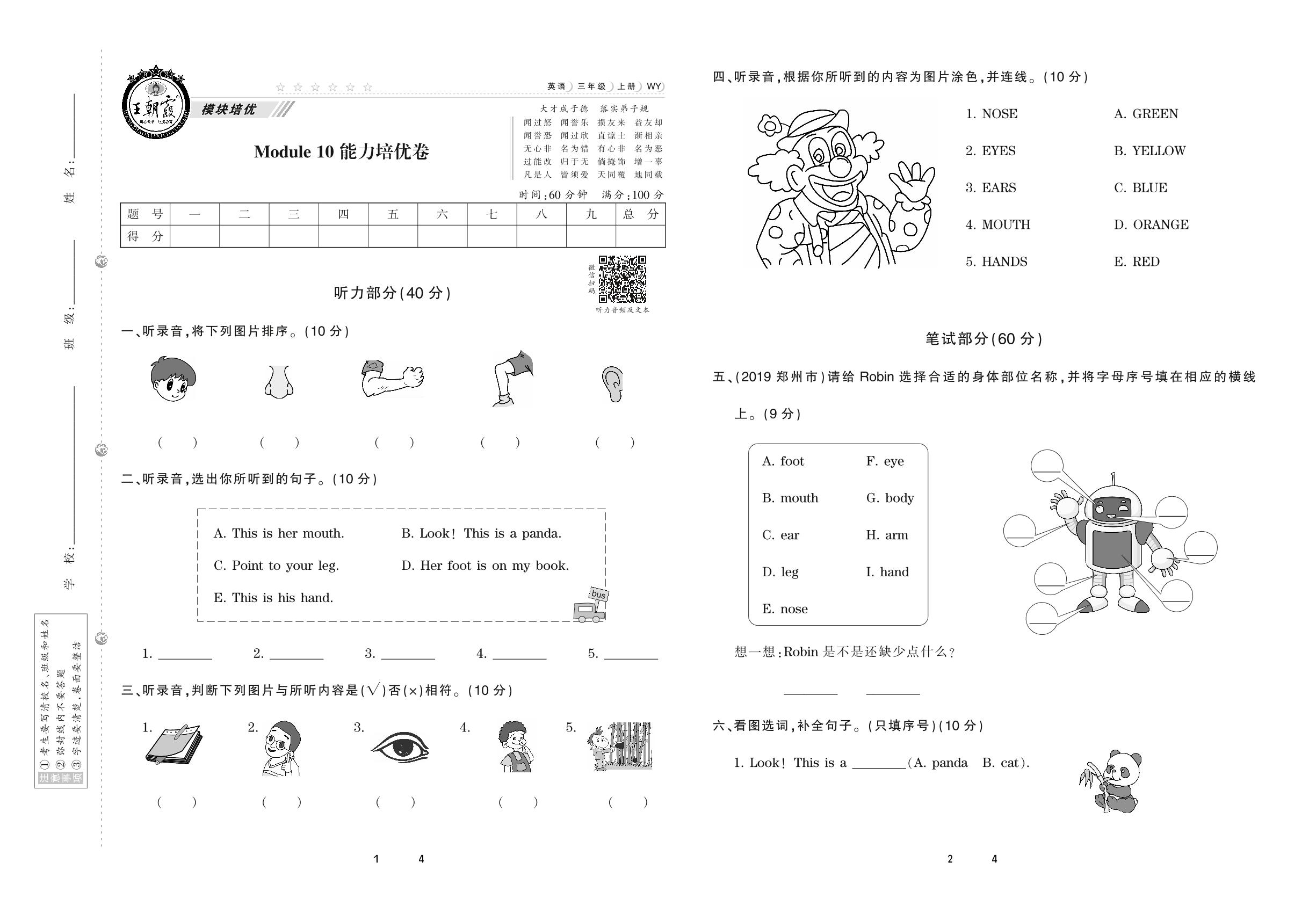2020上册三年级英语外研版 Module 10 能力培优卷