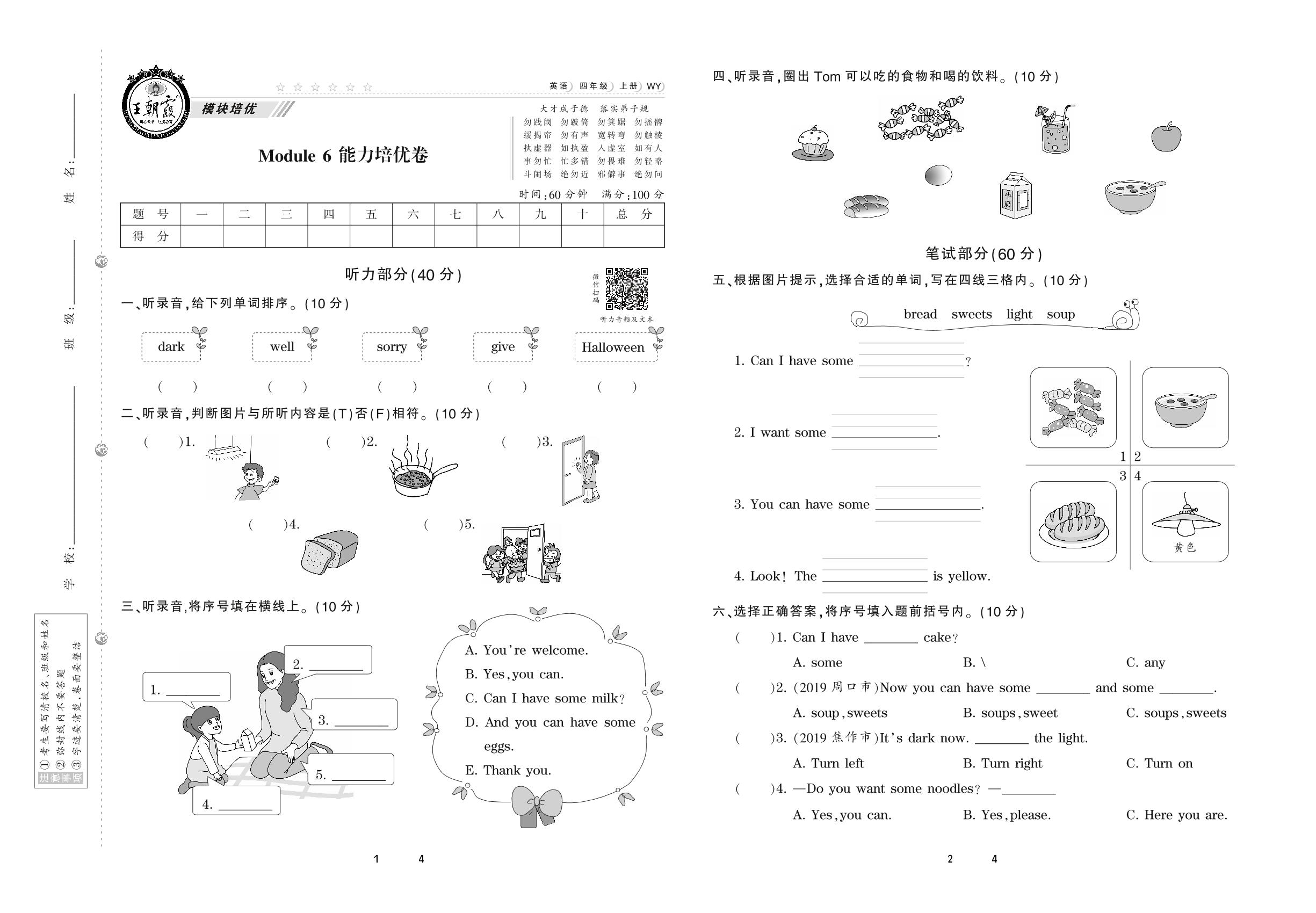 2020上册四年级英语外研版 Module 6 能力培优卷