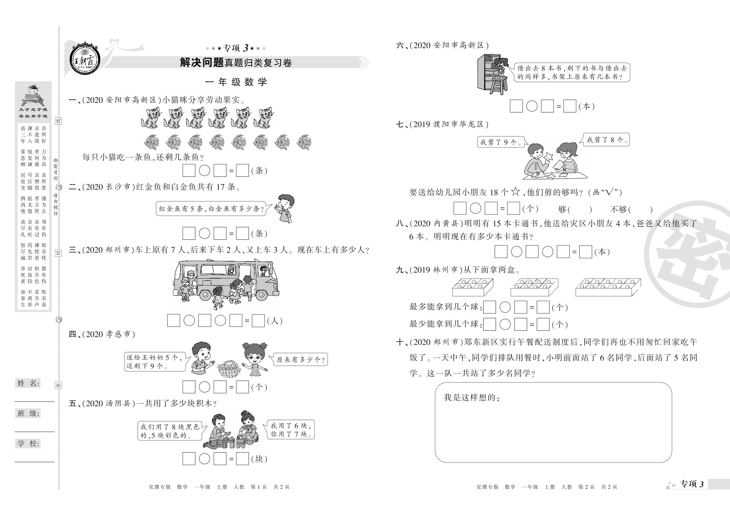 王朝霞期末专项卷——解决问题真题归类复习、新颖题速递:生活与数学一年级上册数学(人教版)_R210801185247