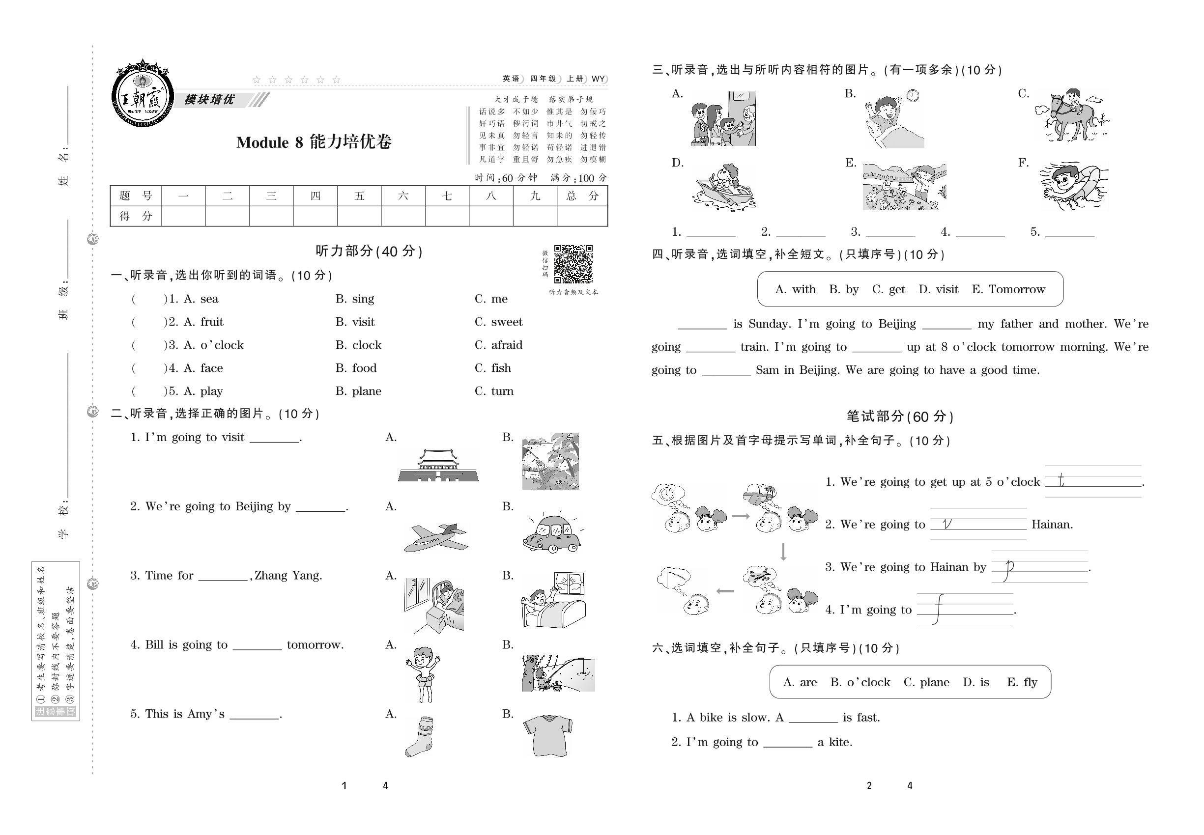 2020上册四年级英语外研版 Module 8 能力培优卷