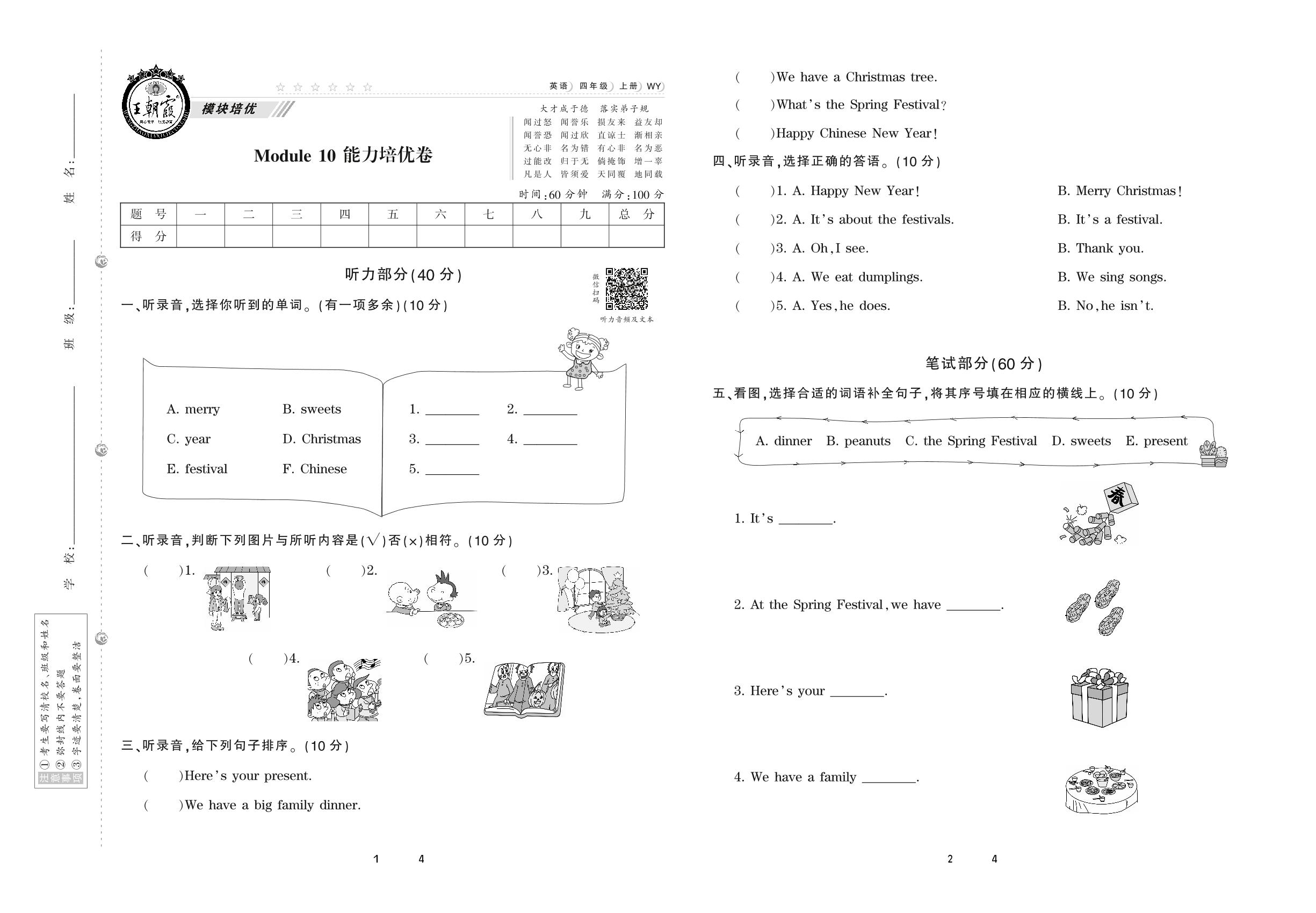 2020上册四年级英语外研版 Module 10 能力培优卷