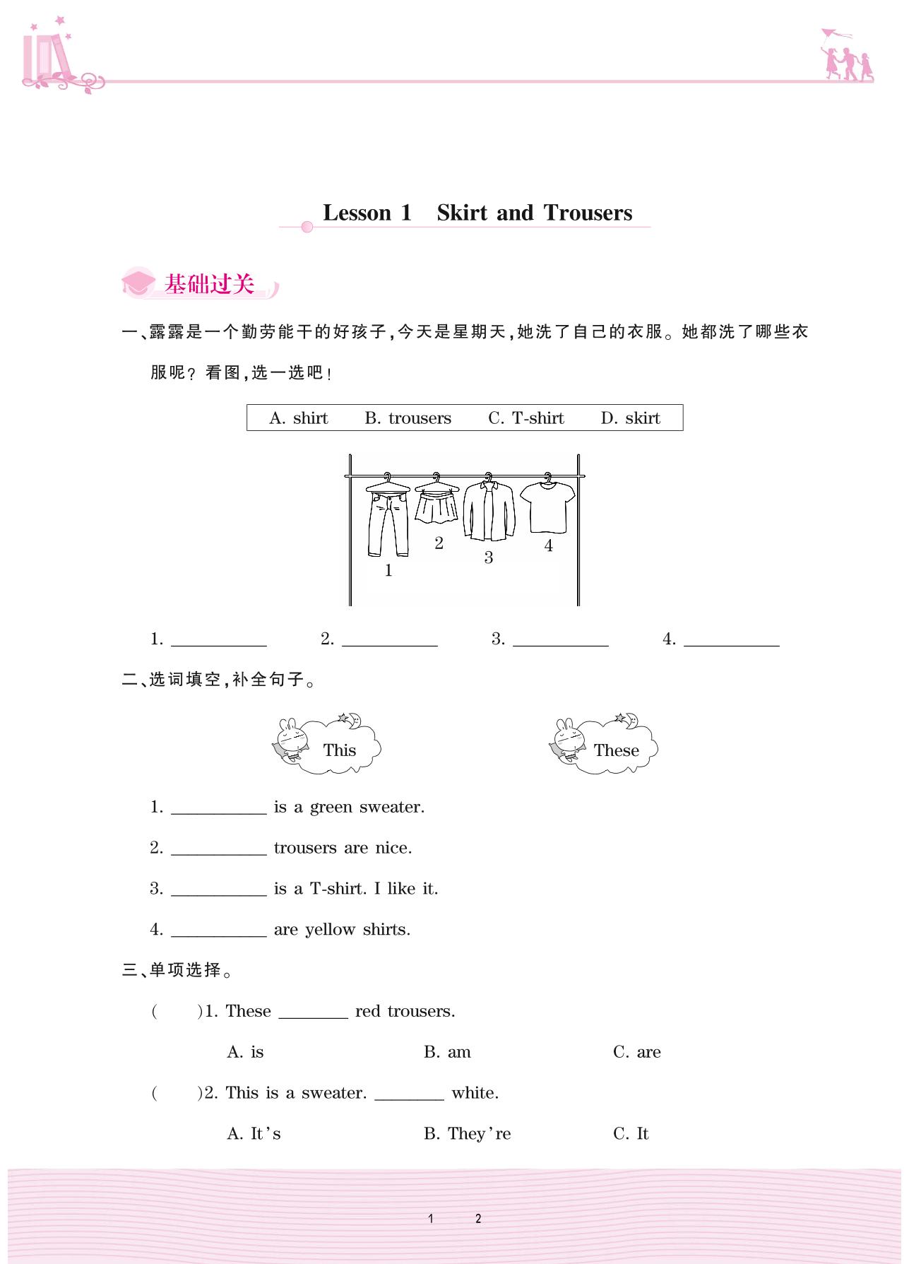 2020上册四年级英语冀教版 Unit 1—Lesson 1 Skirt and Trousers