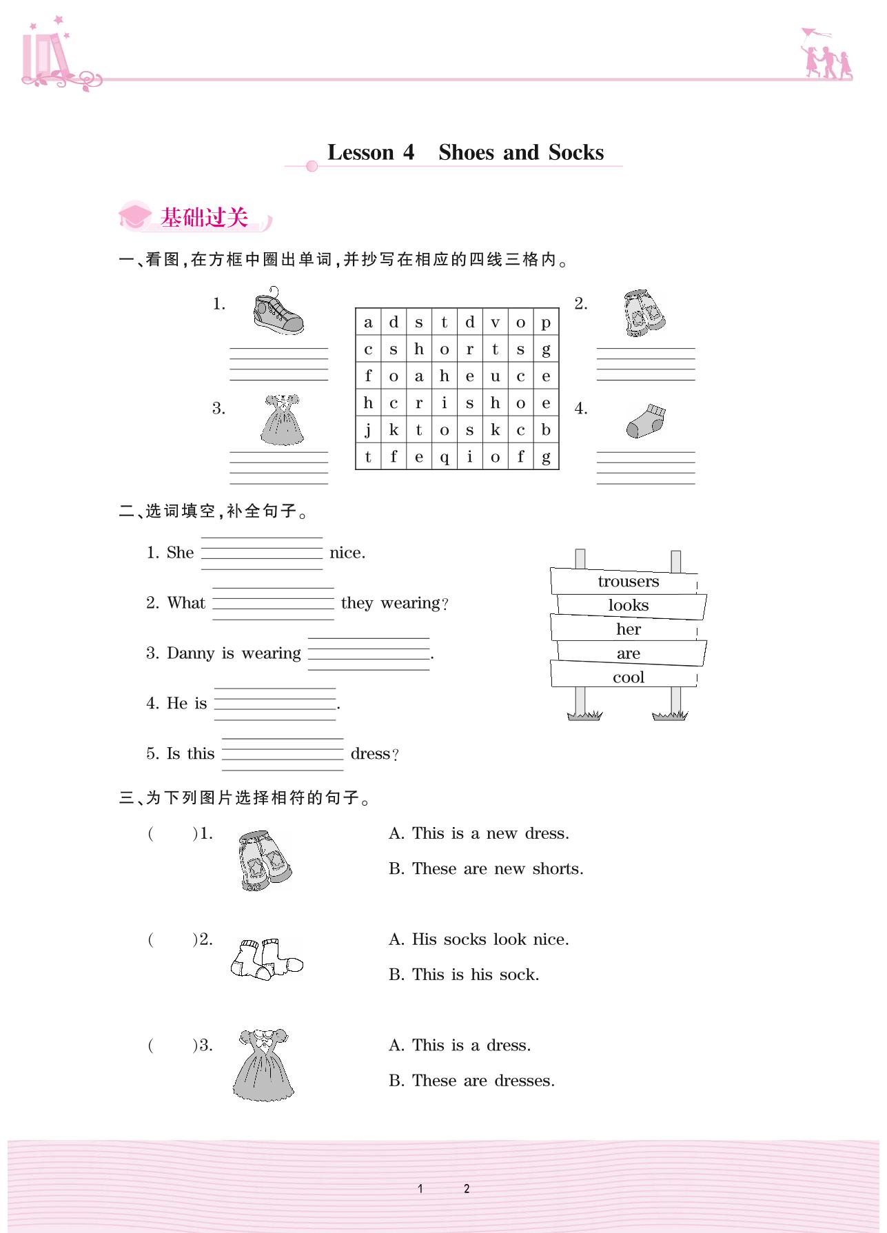 2020上册四年级英语冀教版 Unit 1—Lesson 4 Shoes and Socks