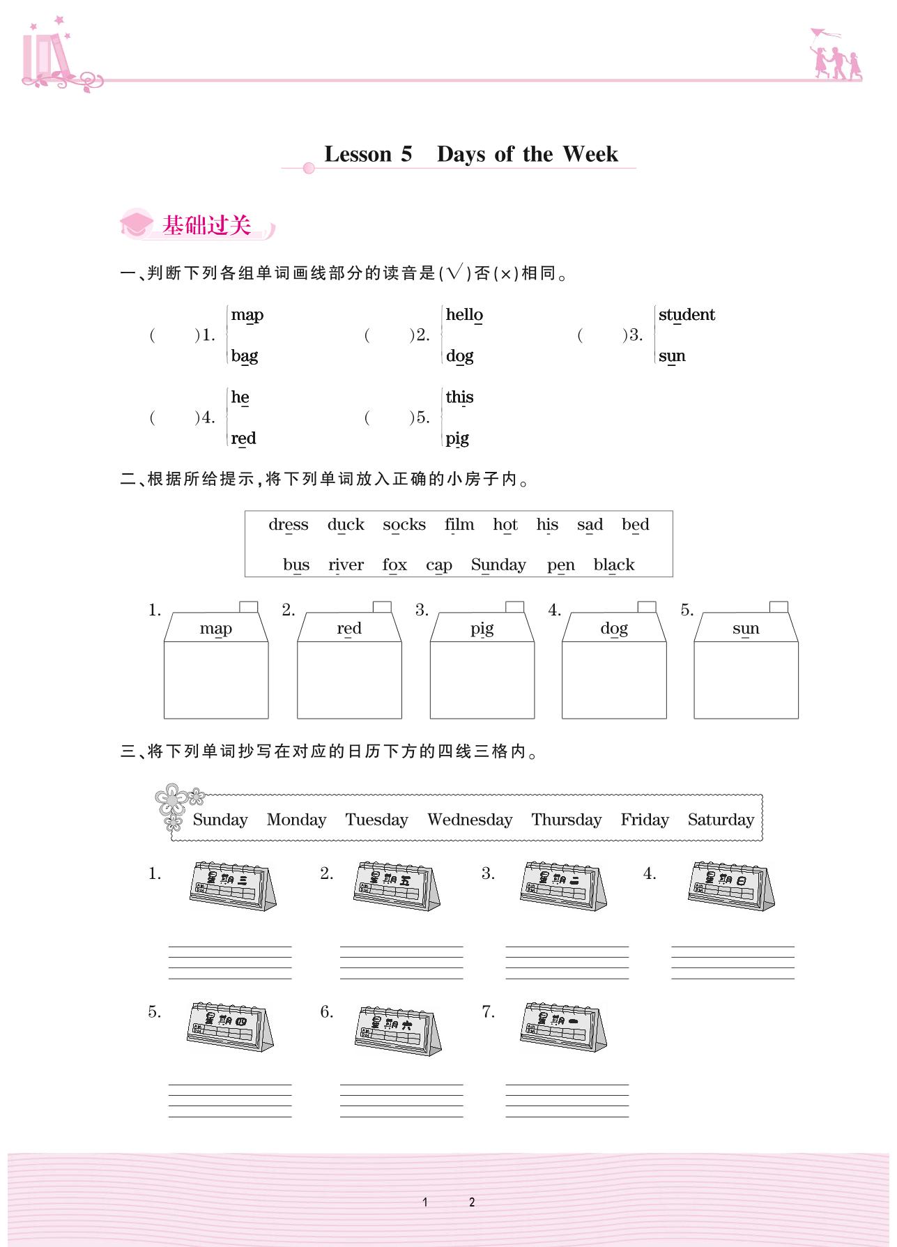 2020上册四年级英语冀教版 Unit 1—Lesson 5 Days of the Week