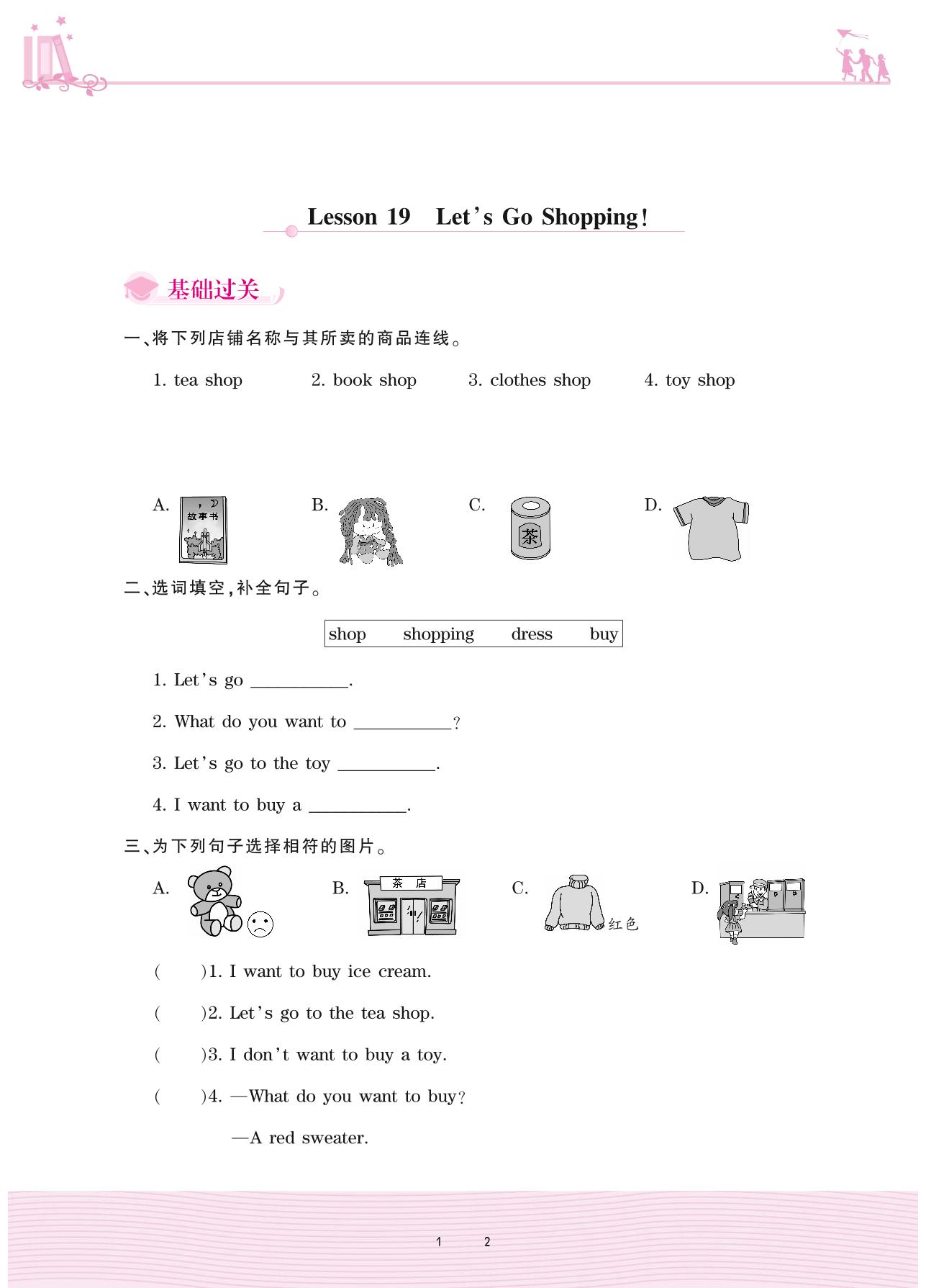 2020上册四年级英语冀教版 Unit 4—Lesson 19 Let’s Go Shopping!