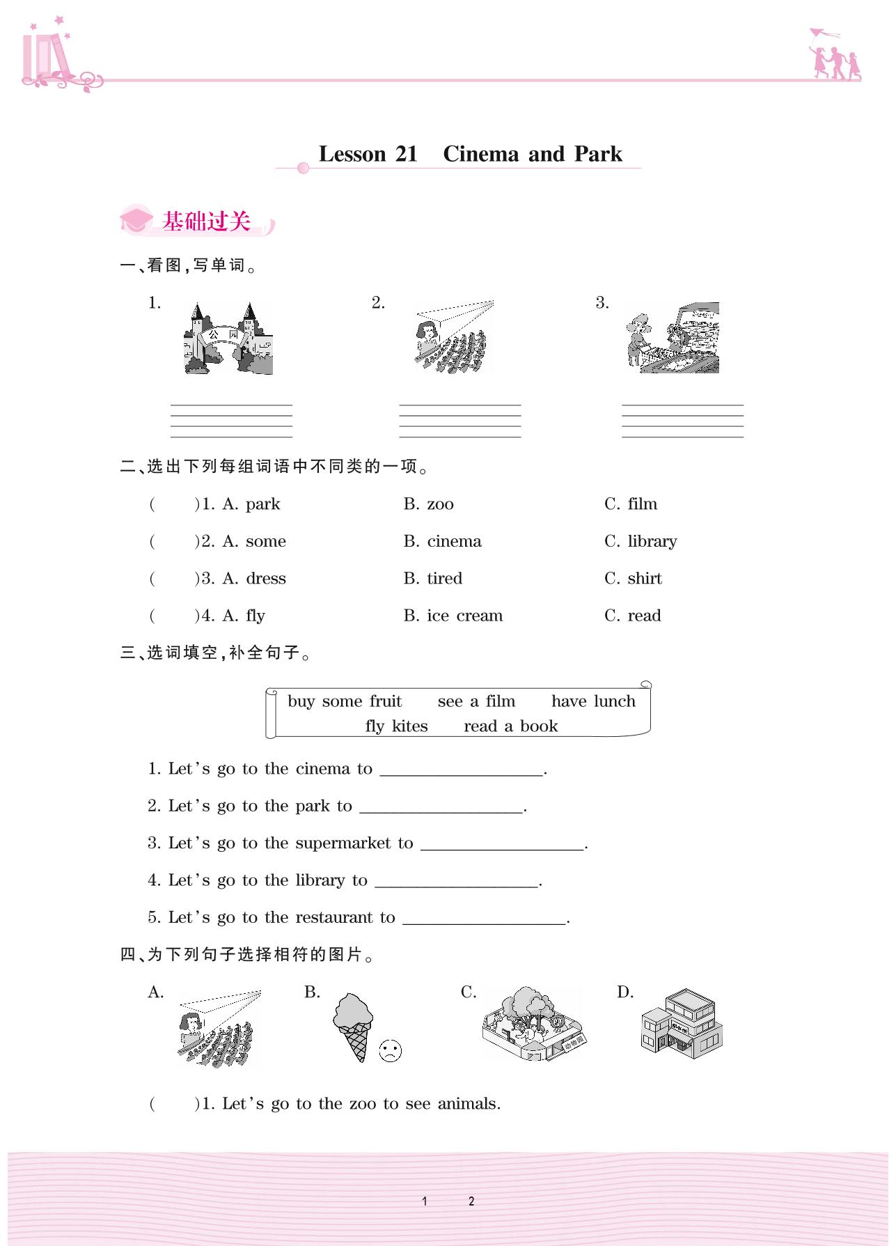 2020上册四年级英语冀教版 Unit 4—Lesson 21 Cinema and Park