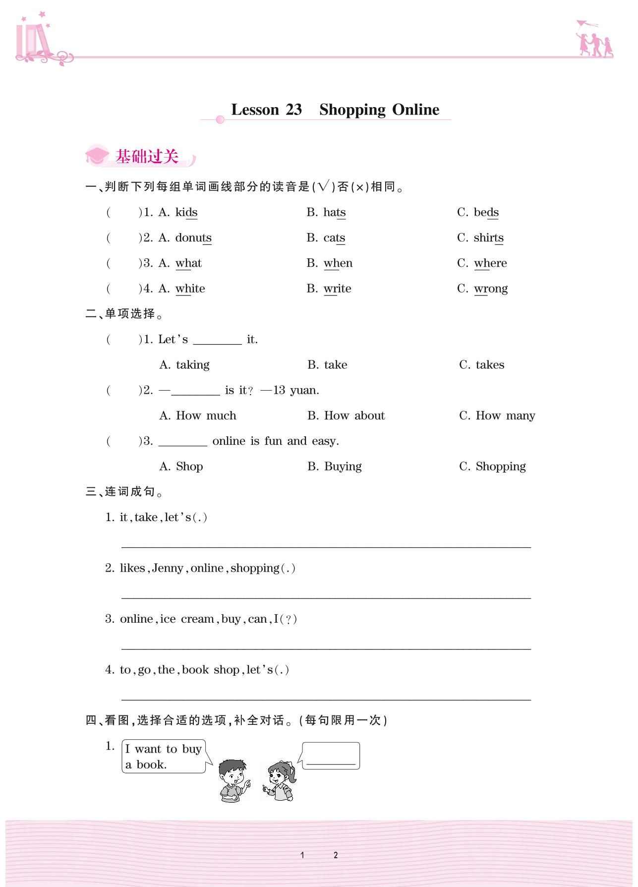 2020上册四年级英语冀教版 Unit 4—Lesson 23 Shopping Online