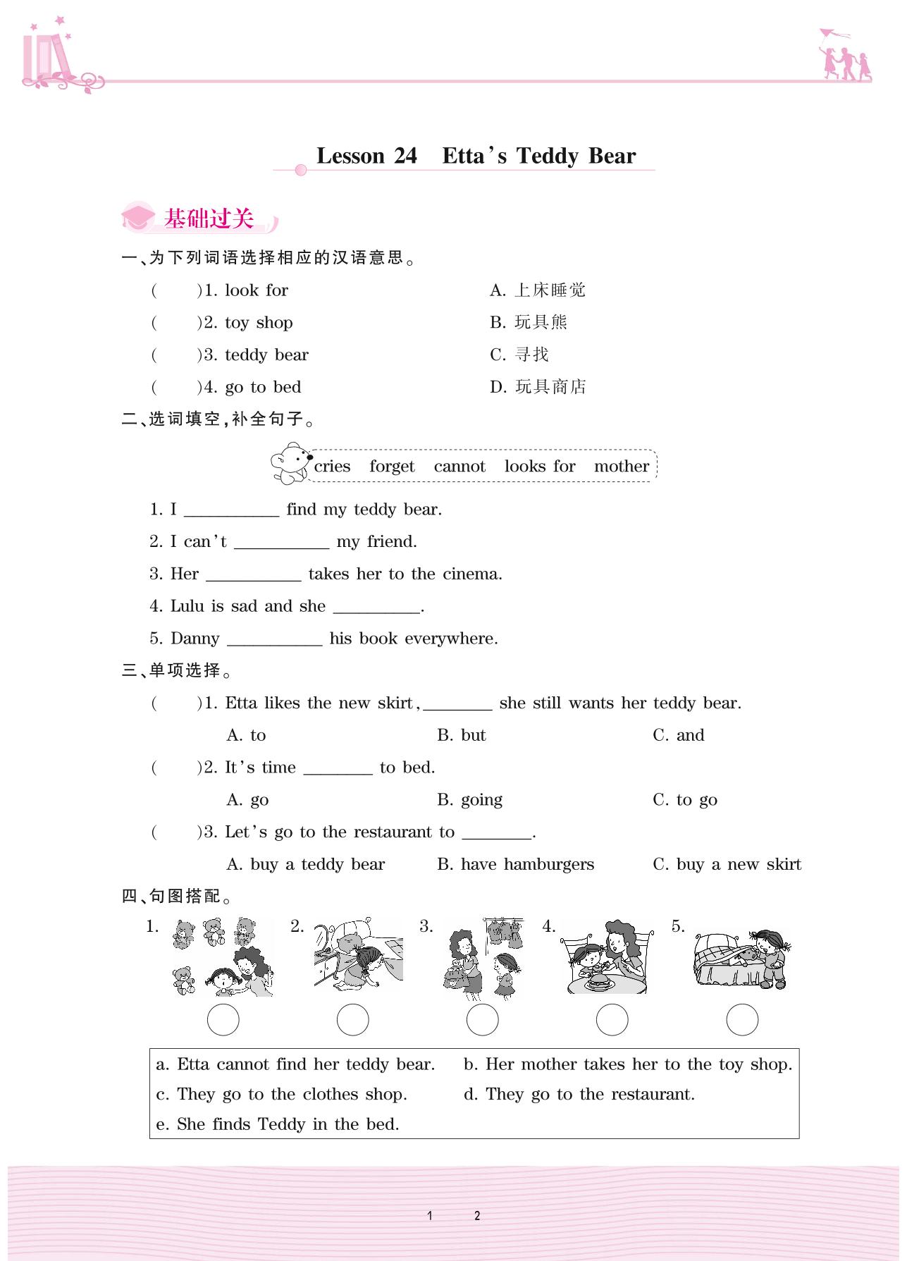2020上册四年级英语冀教版 Unit 4—Lesson 24 Etta’s Teddy Bear