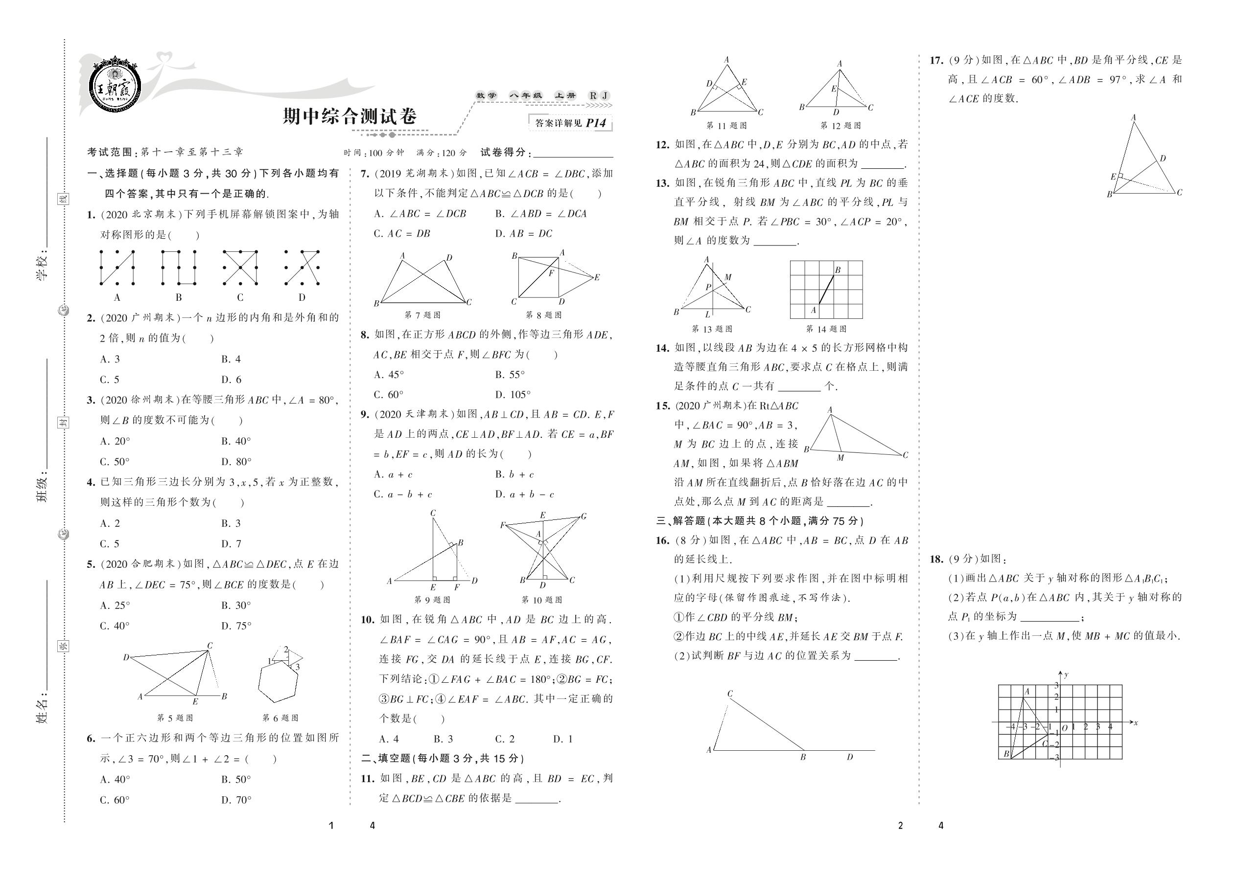 八年级数学人教版上册期中卷