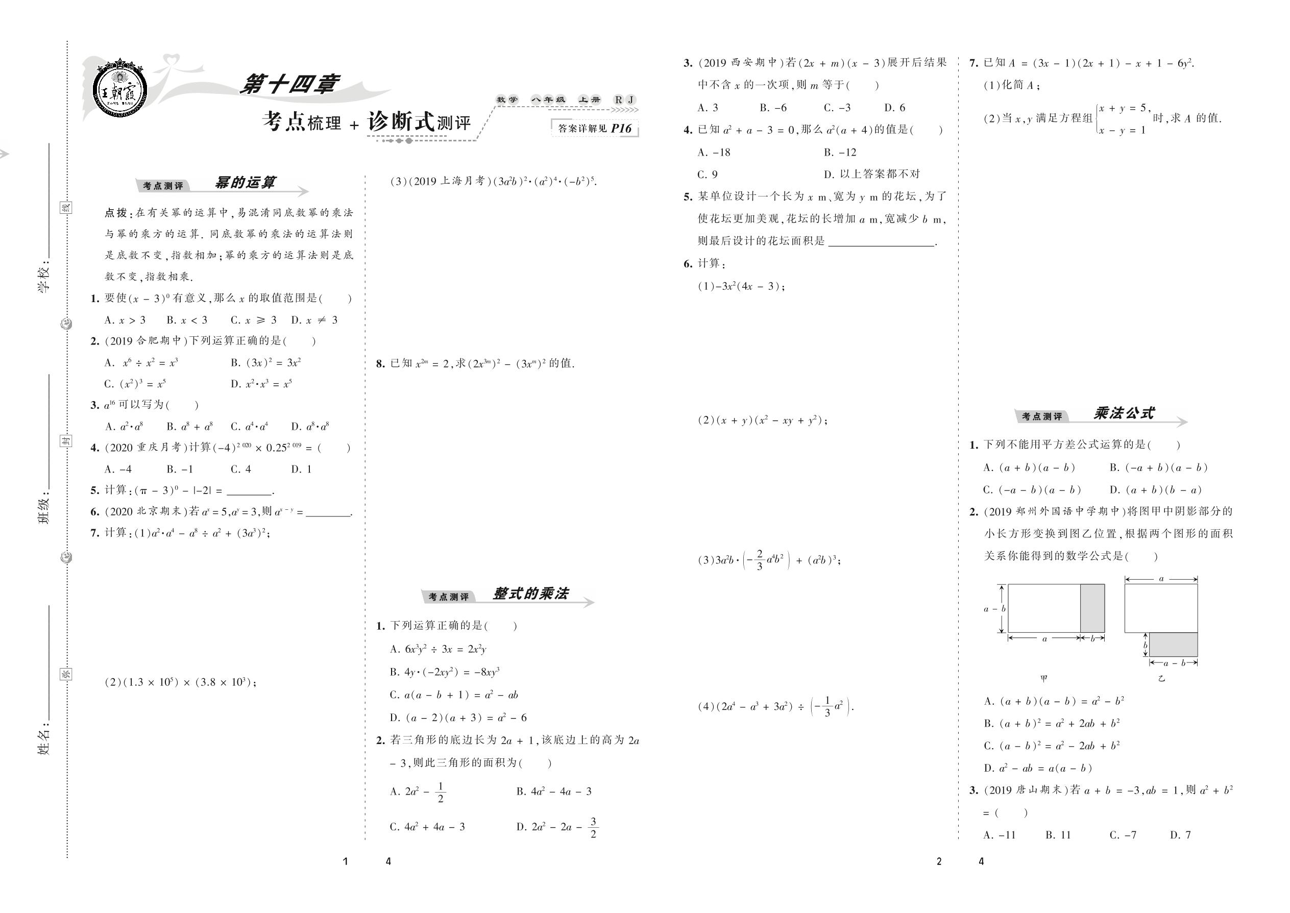 2020上册八年级数学人教版 第十四章 考点梳理 + 诊断式测评