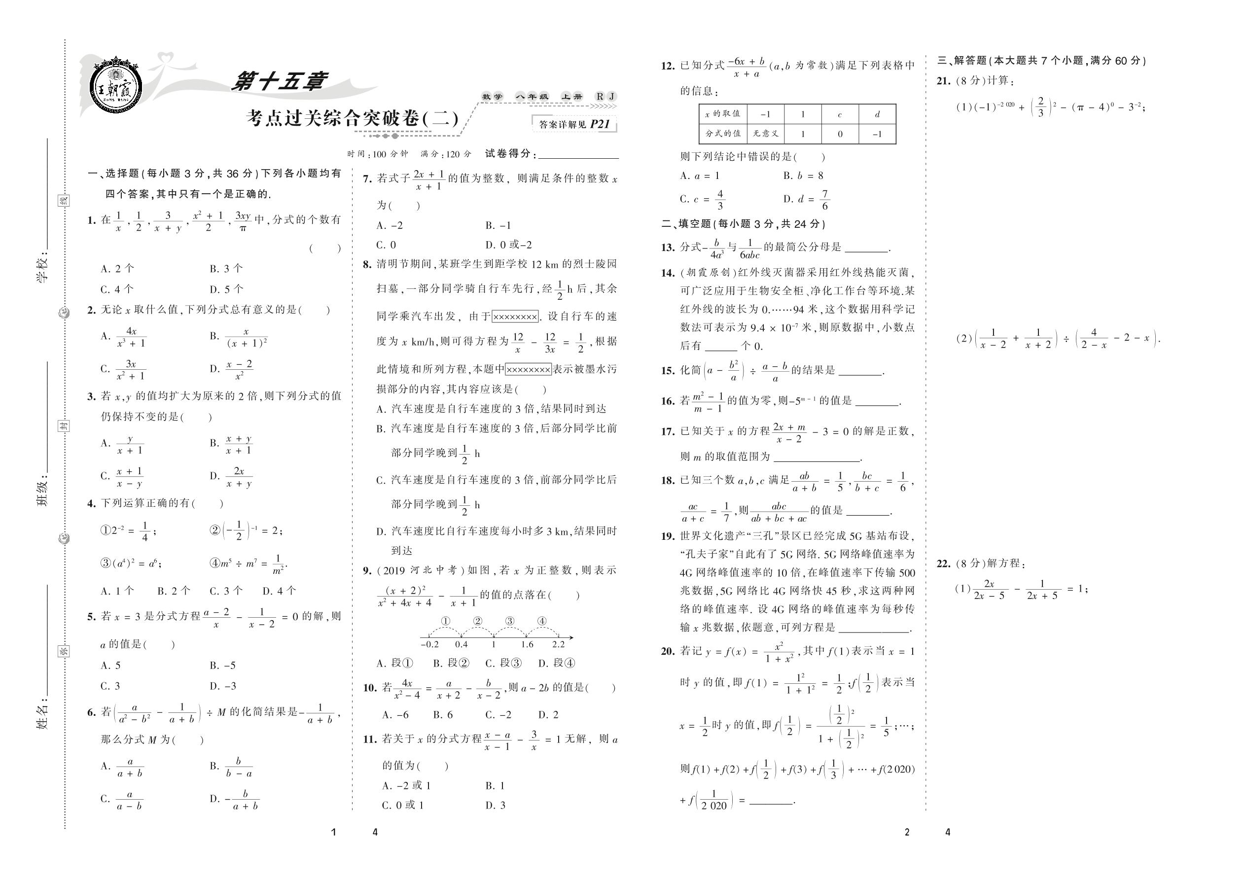 2020上册八年级数学人教版 第十五章 考点过关综合突破卷(二)
