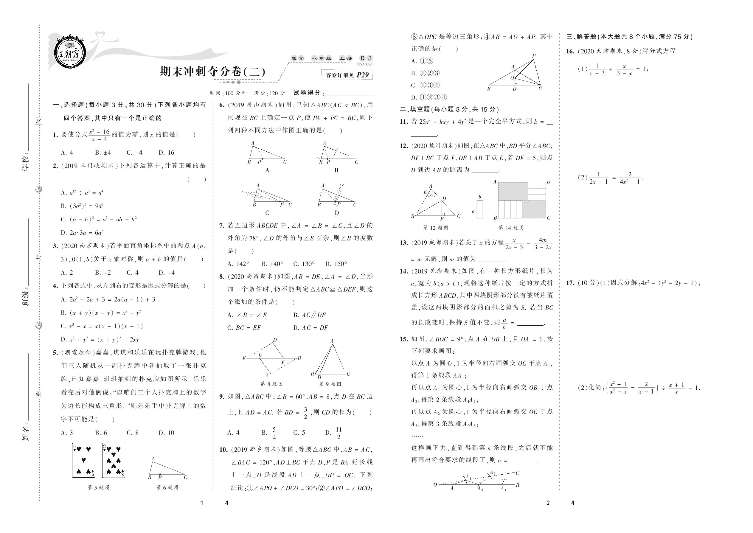 2020上册八年级数学人教版 期末冲刺夺分卷(二)