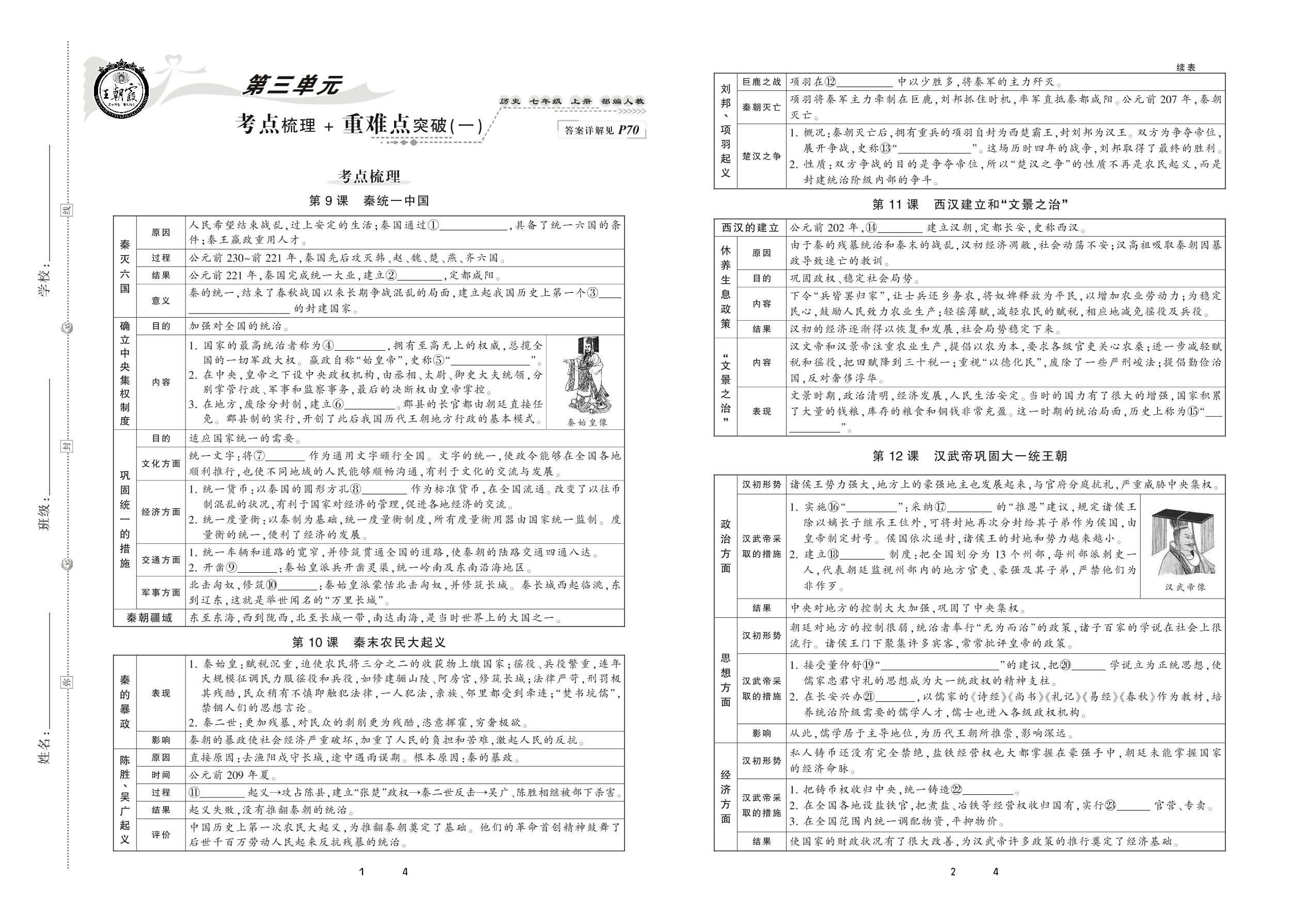 2020上册七年级历史人教版 第三单元 考点梳理+重难点突破(一)