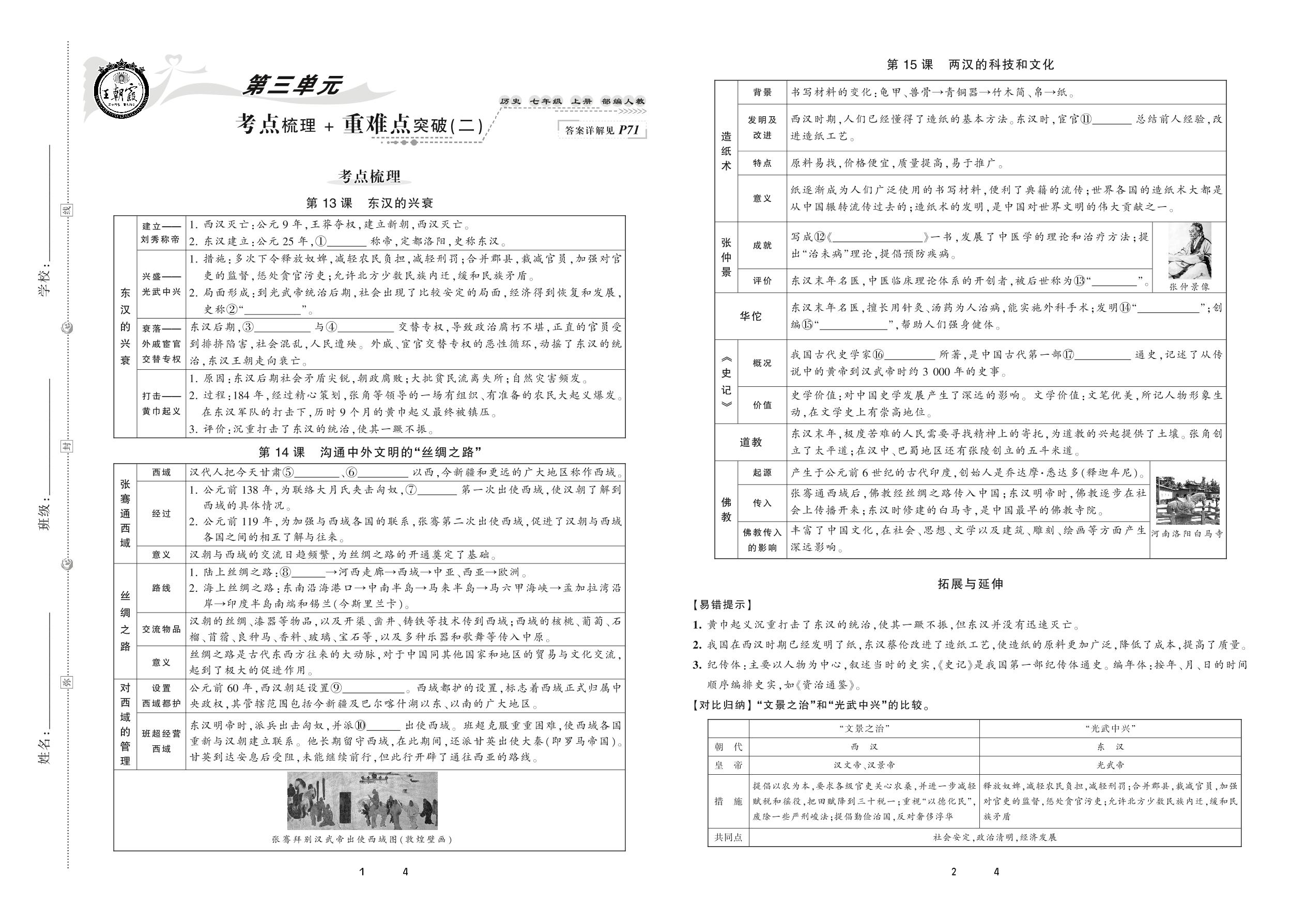 2020上册七年级历史人教版 第三单元 考点梳理+重难点突破(二)