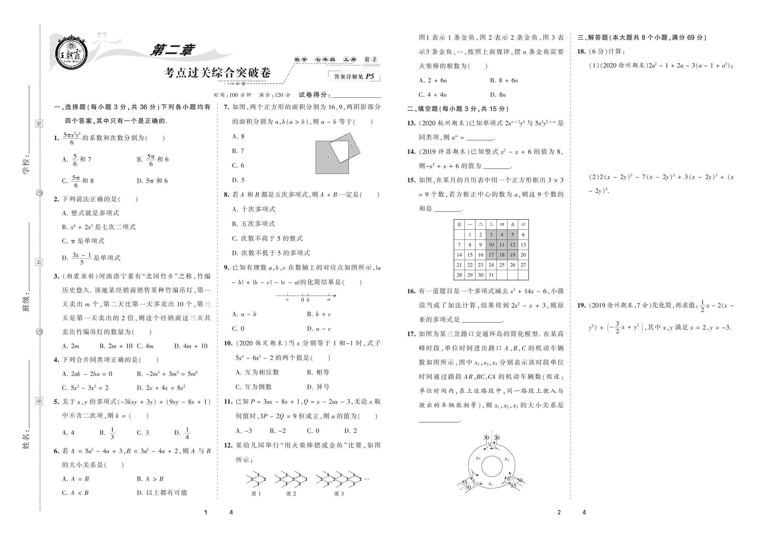 2020上册七年级数学人教版 第二章 考点过关综合突破卷