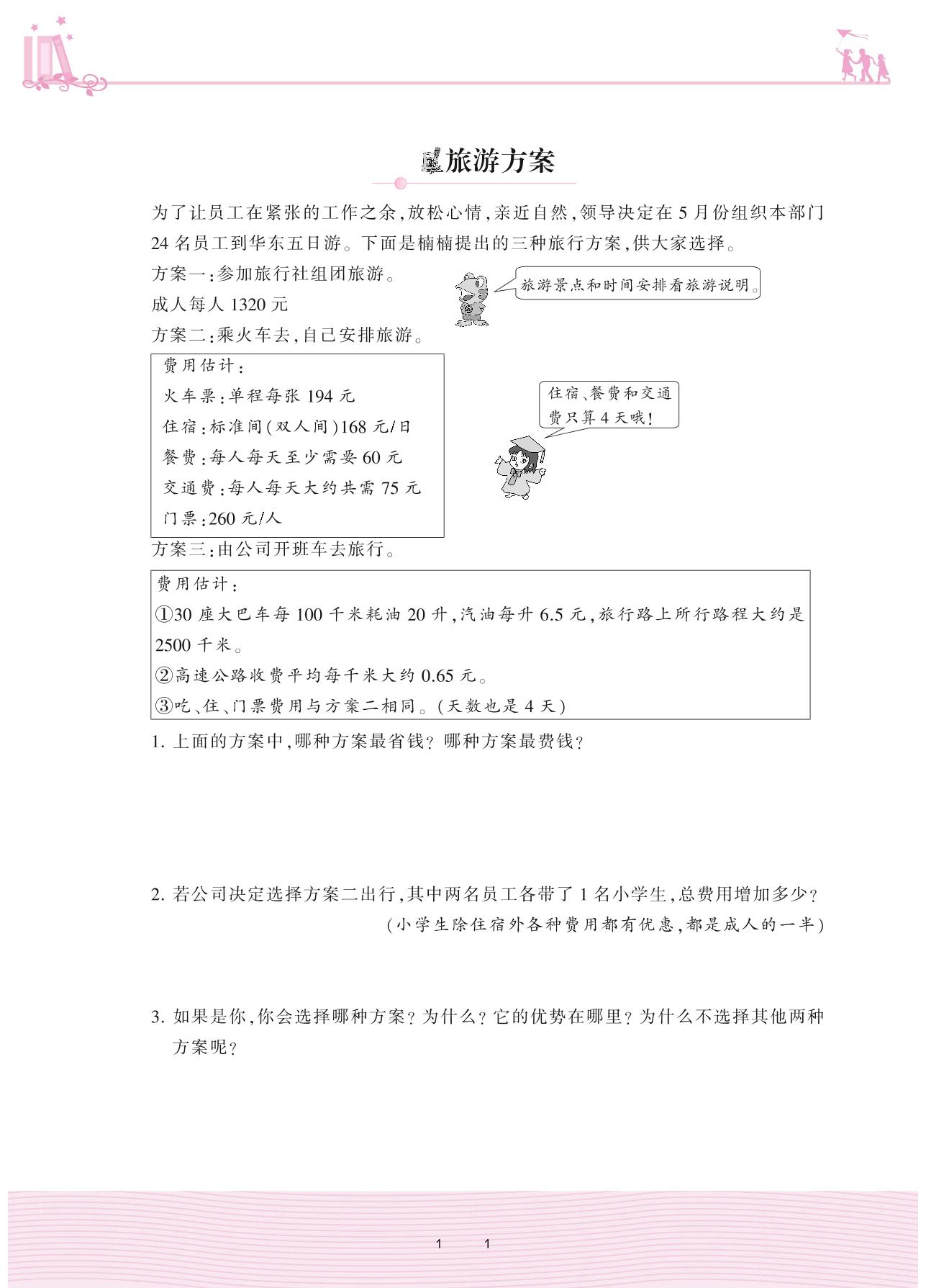 2020上册五年级数学冀教版 二 小数乘法——旅游方案