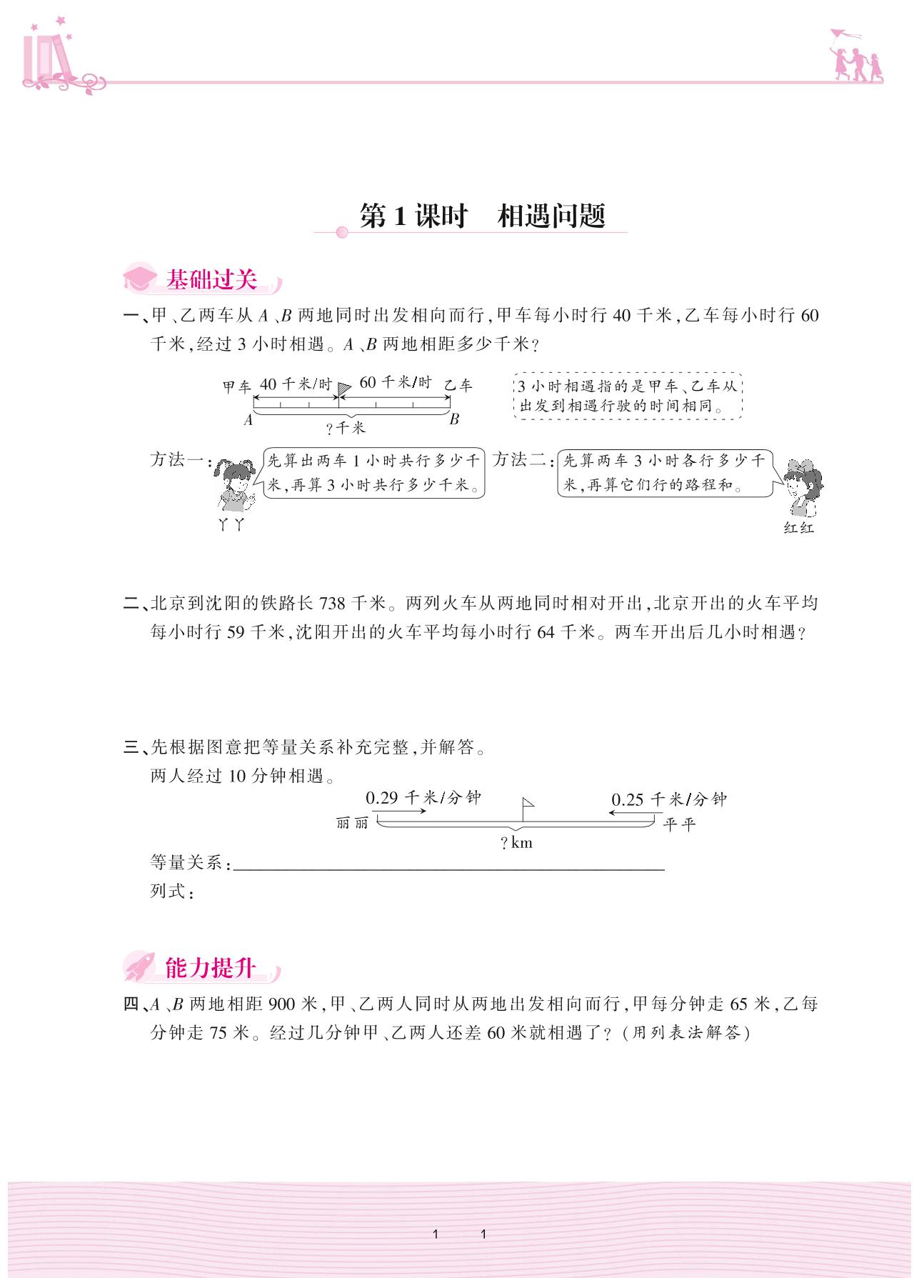 2020上册五年级数学冀教版 五 四则混合运算(二)——第1课时 相遇问题