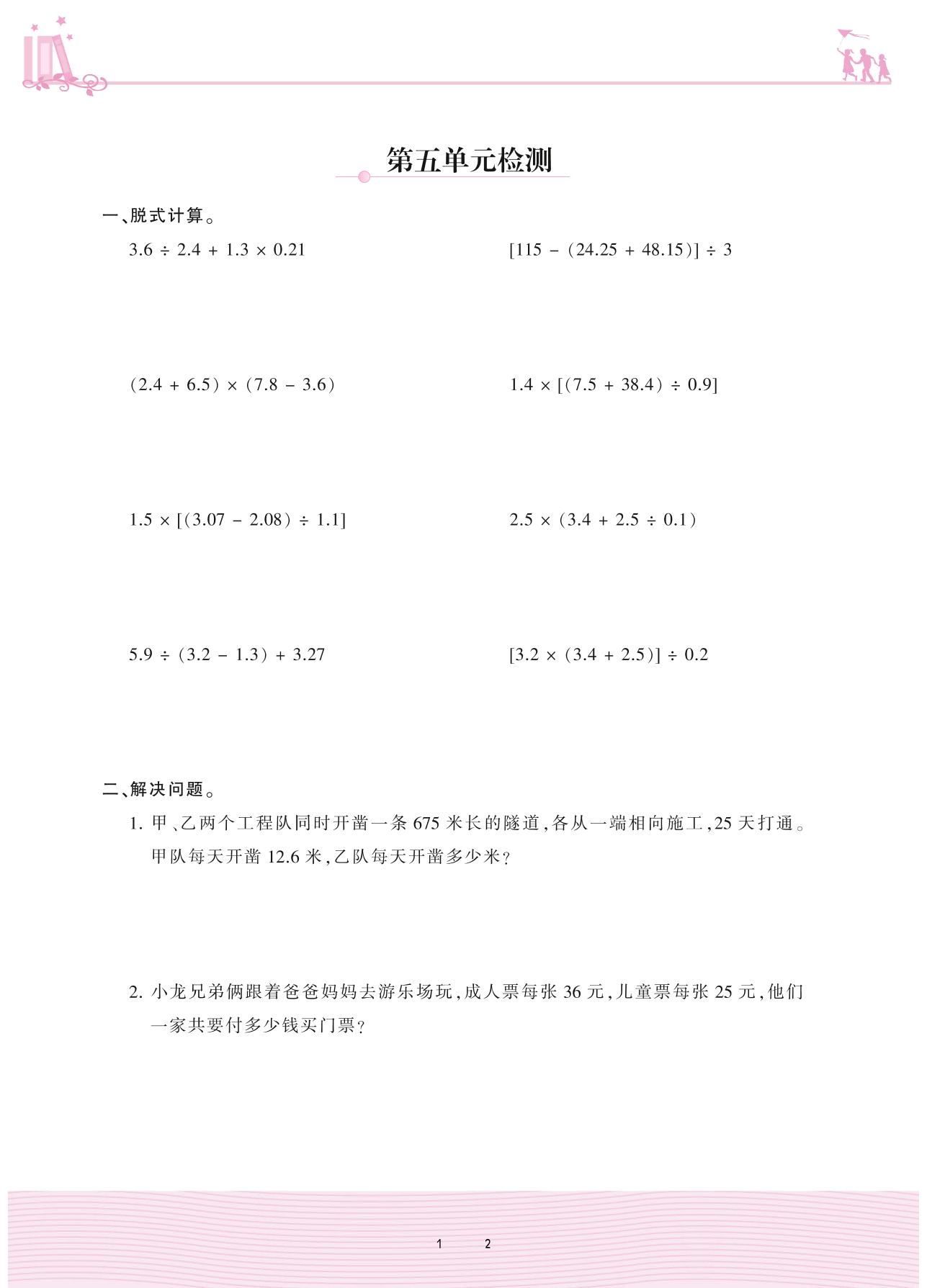 2020上册五年级数学冀教版 五 四则混合运算(二)——第五单元检测