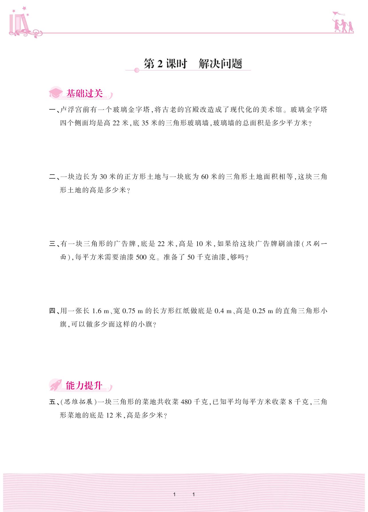 2020上册五年级数学冀教版 六 多边形的面积 2. 三角形面积——第2课时 解决问题