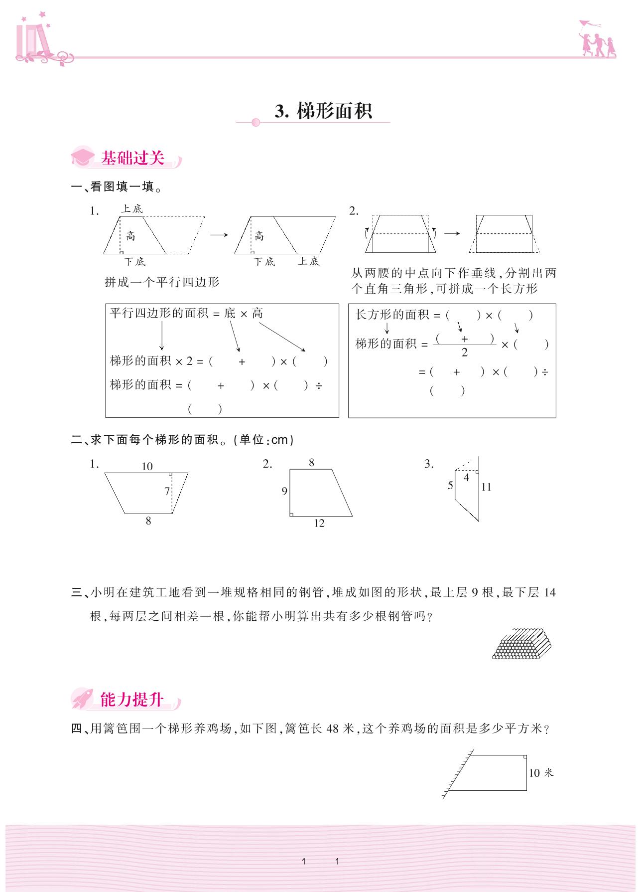 2020上册五年级数学冀教版 六 多边形的面积 3. 梯形面积