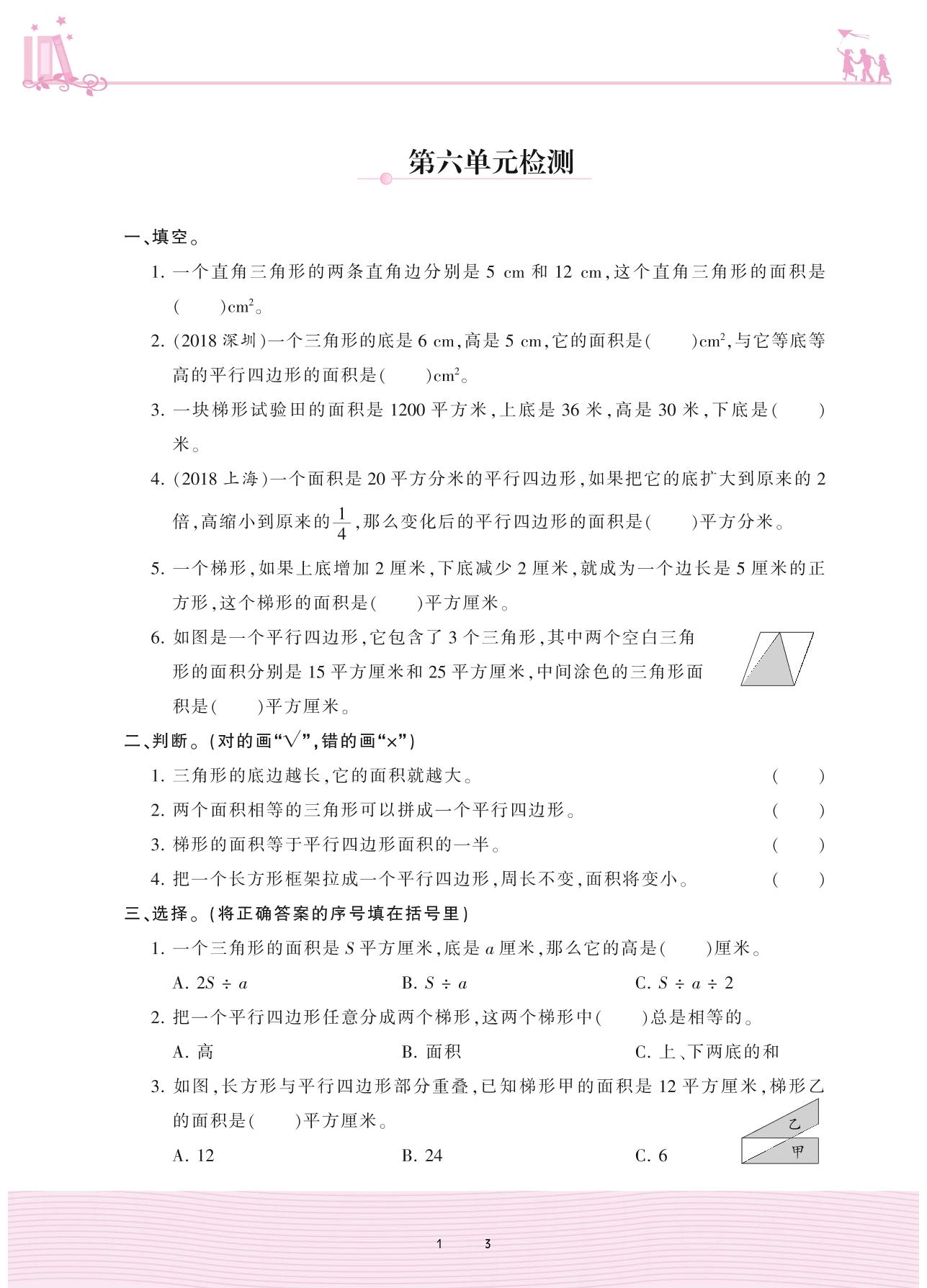 2020上册五年级数学冀教版 六 多边形的面积——第六单元检测