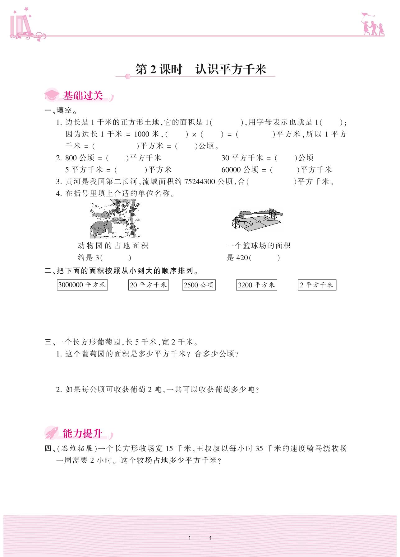 2020上册五年级数学冀教版 七 土地的面积——第2课时 认识平方千米