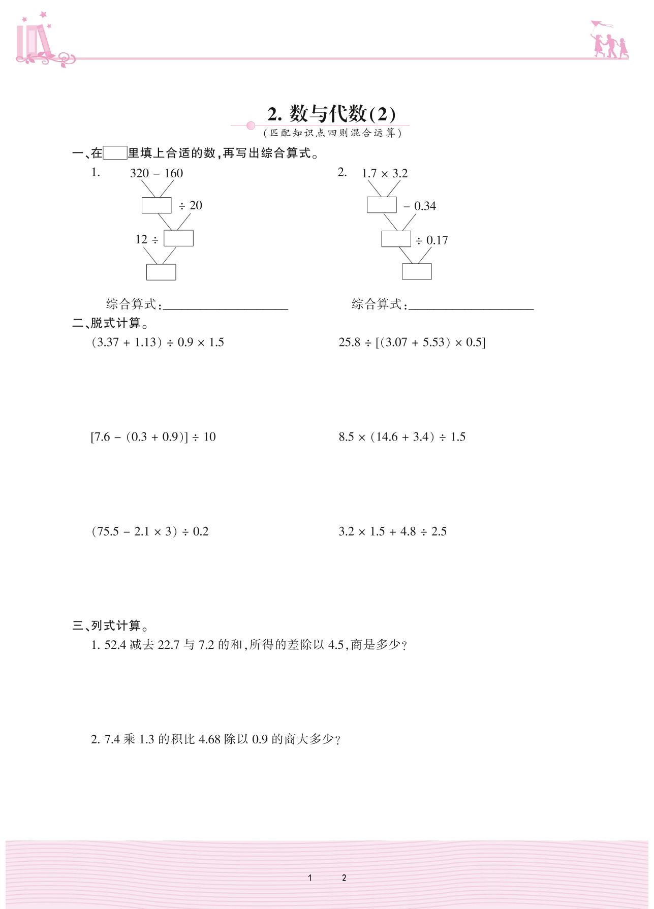 2020上册五年级数学冀教版 整理与评价——2. 数与代数(2)