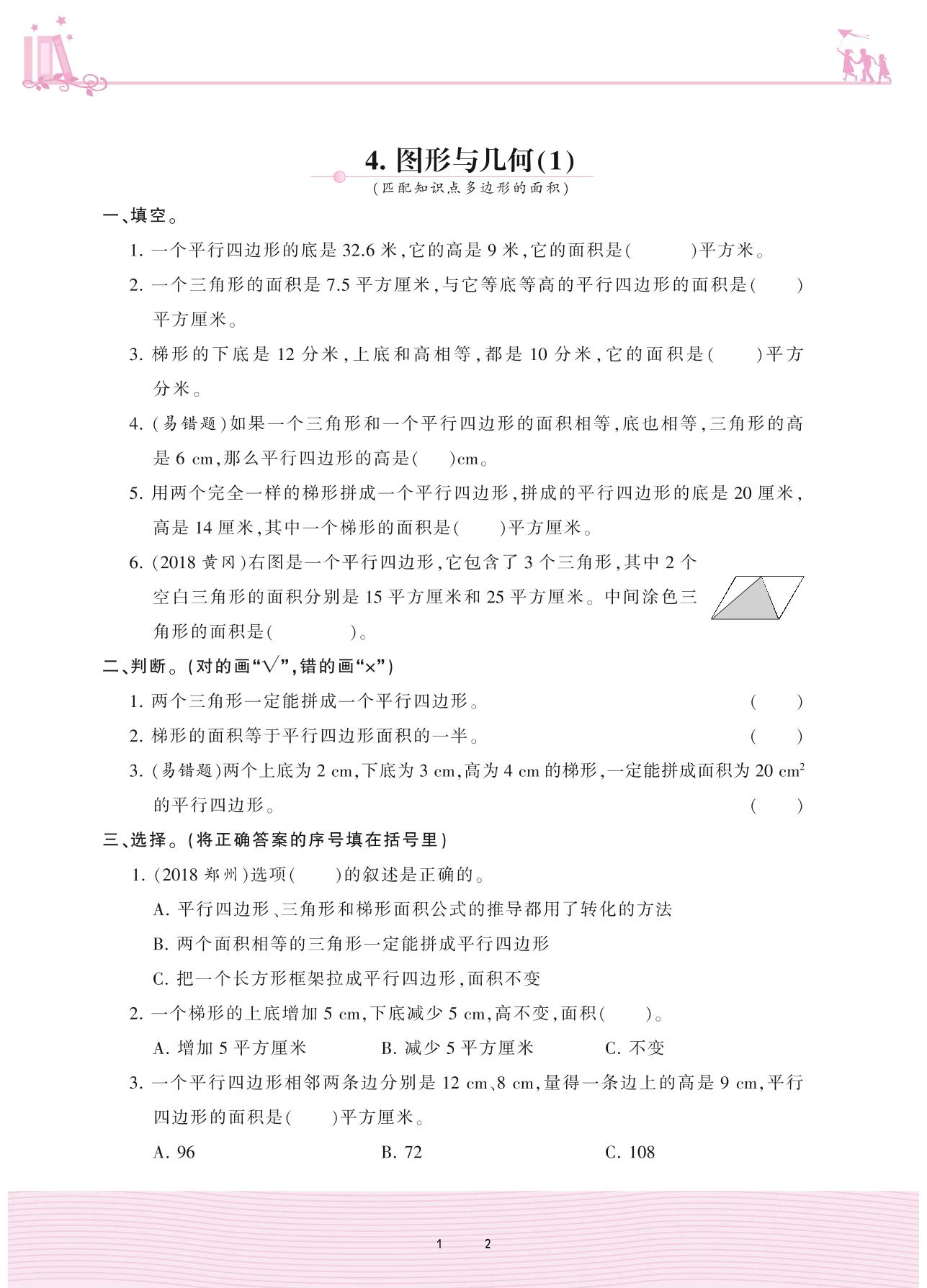 2020上册五年级数学冀教版 整理与评价——4. 图形与几何(1)