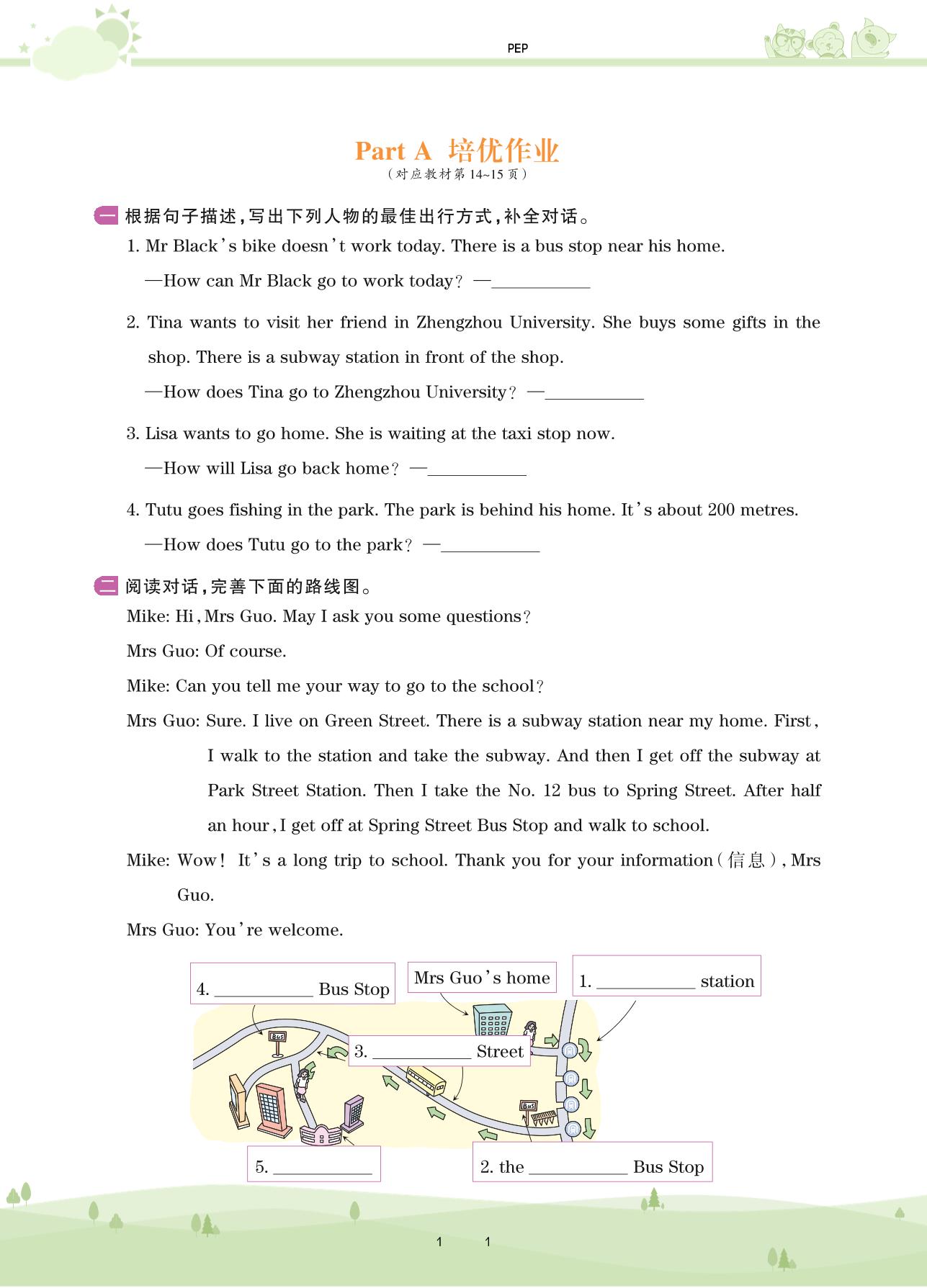 2020上册六年级英语PEP版 Unit 2—Part A 培优作业