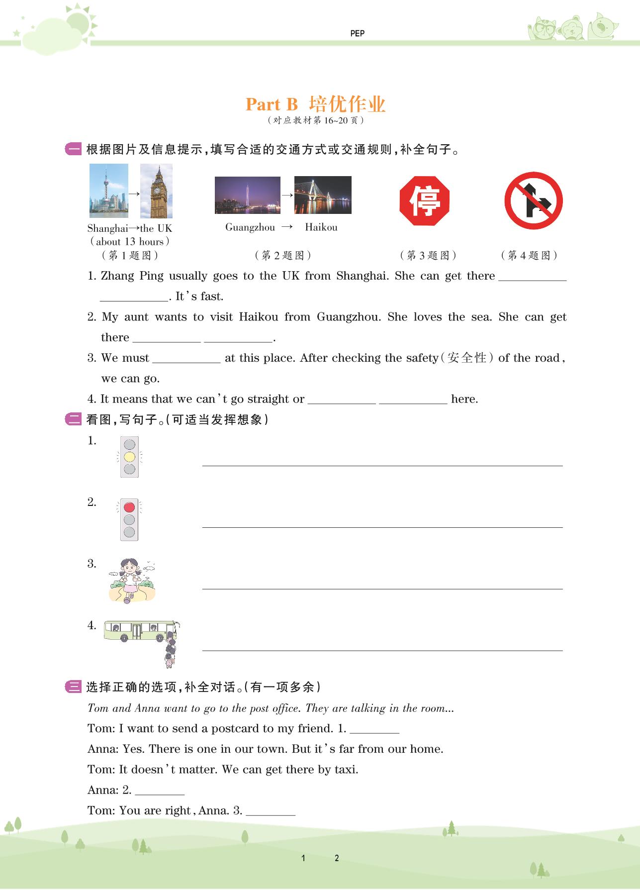 2020上册六年级英语PEP版 Unit 2—Part B 培优作业