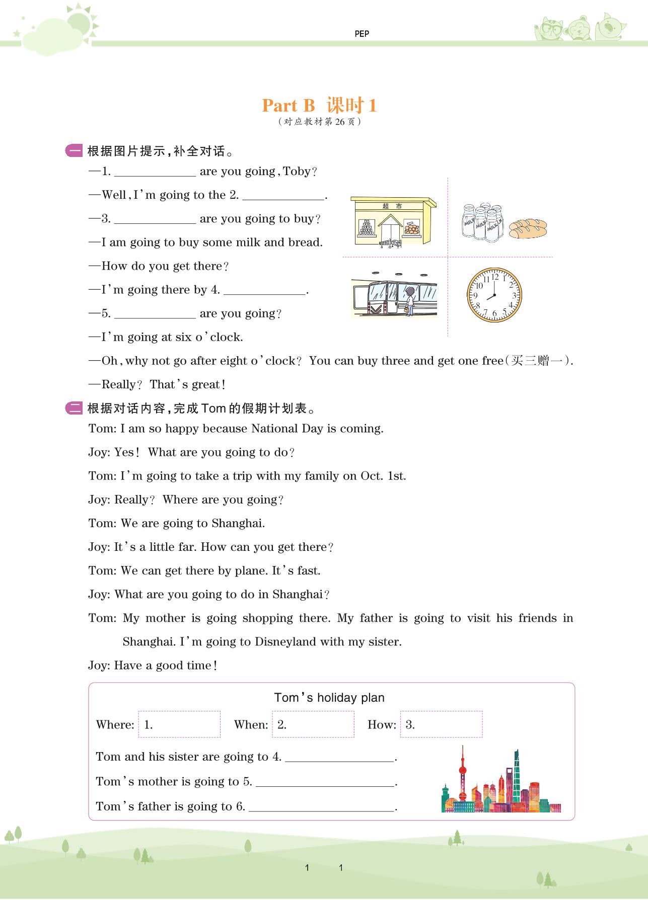 2020上册六年级英语PEP版 Unit 3—Part B 课时1