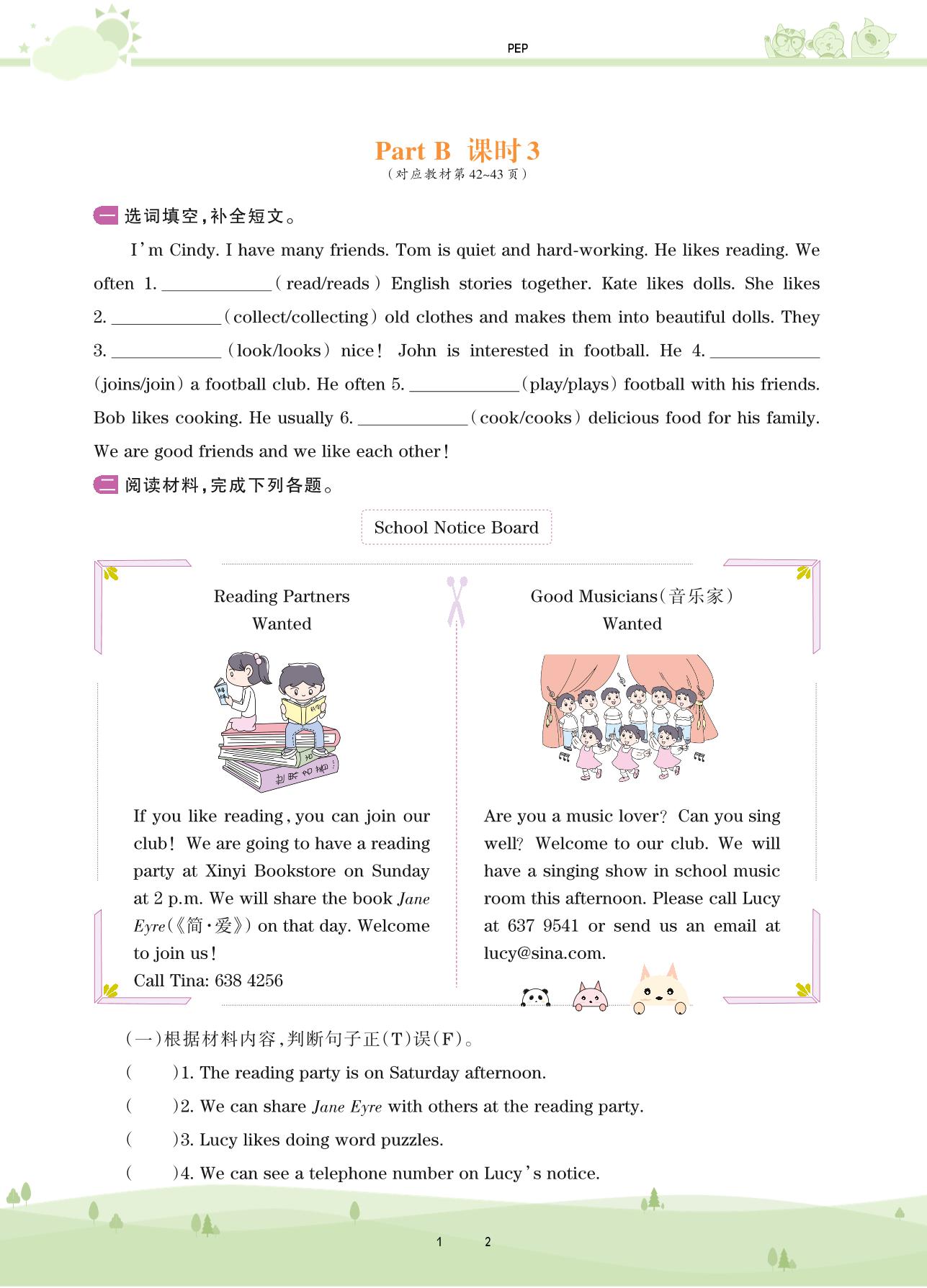 2020上册六年级英语PEP版 Unit 4—Part B 课时3