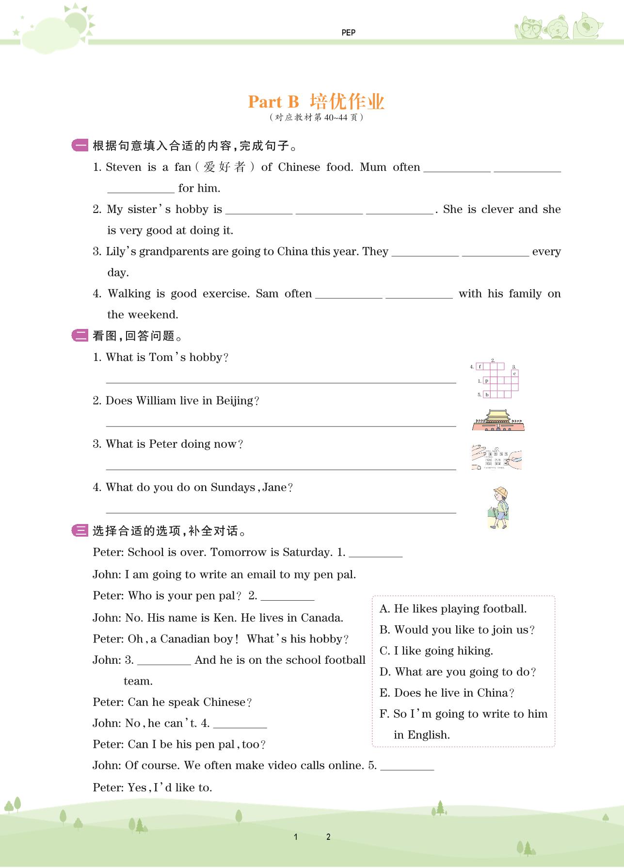 2020上册六年级英语PEP版 Unit 4—Part B 培优作业