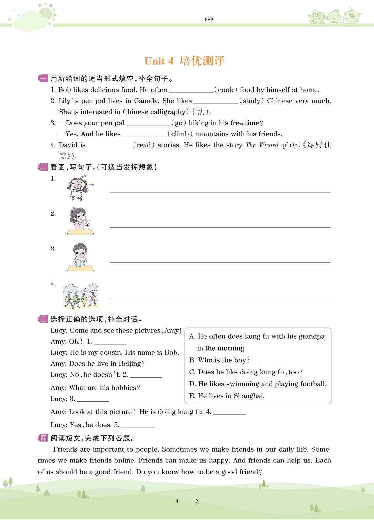 2020上册六年级英语PEP版 Unit 4 培优测评