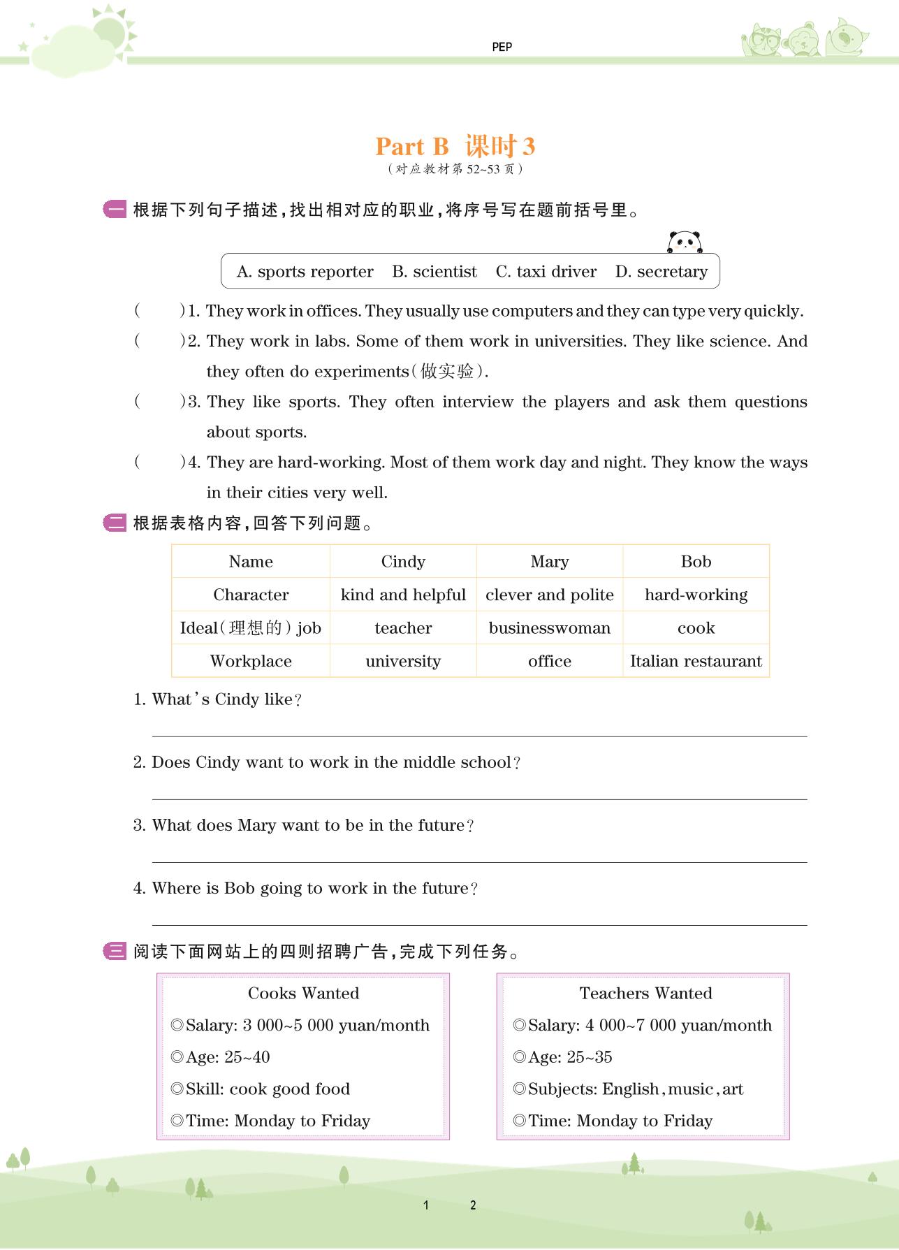 2020上册六年级英语PEP版 Unit 5—Part B 课时3