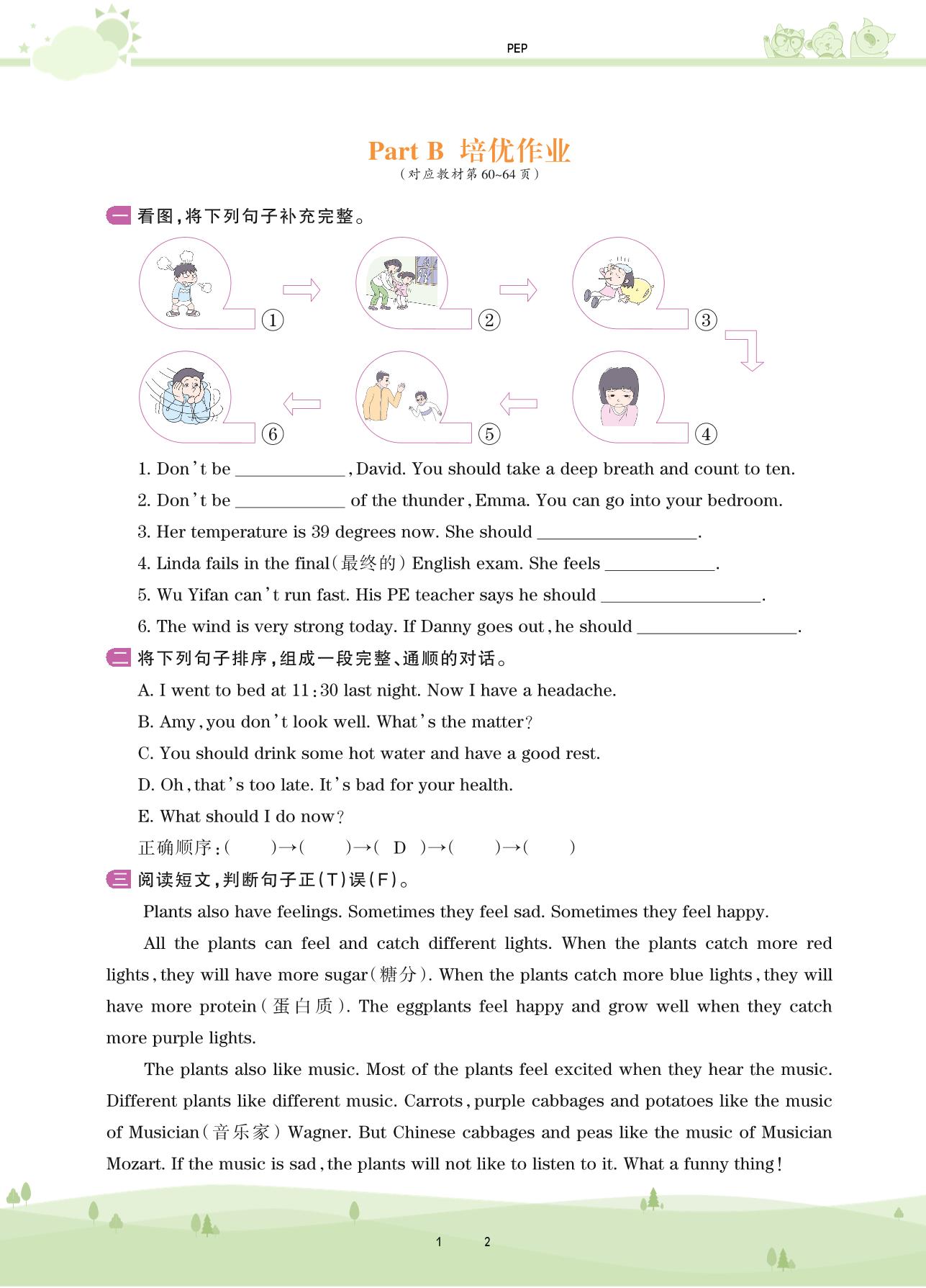 2020上册六年级英语PEP版 Unit 6—Part B 培优作业