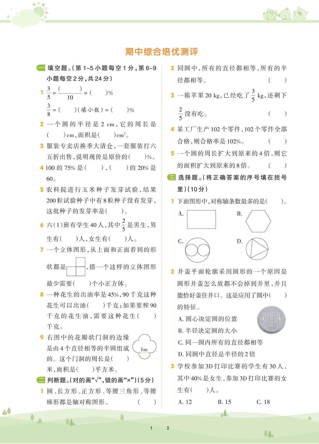 2020上册六年级数学北师版 期中综合培优测评