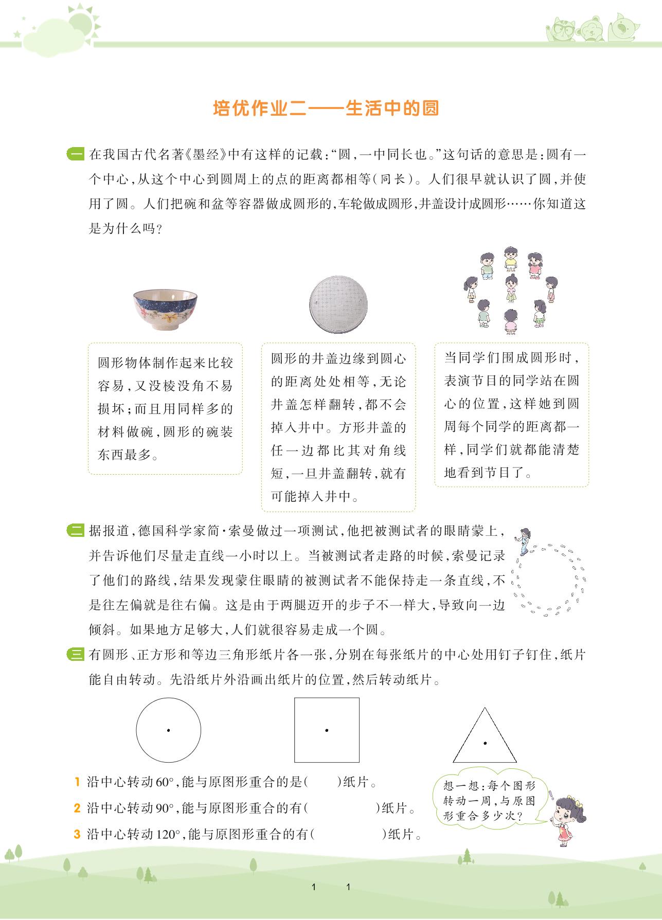 2020上册六年级数学北师版 第一单元 圆——培优作业二——生活中的圆