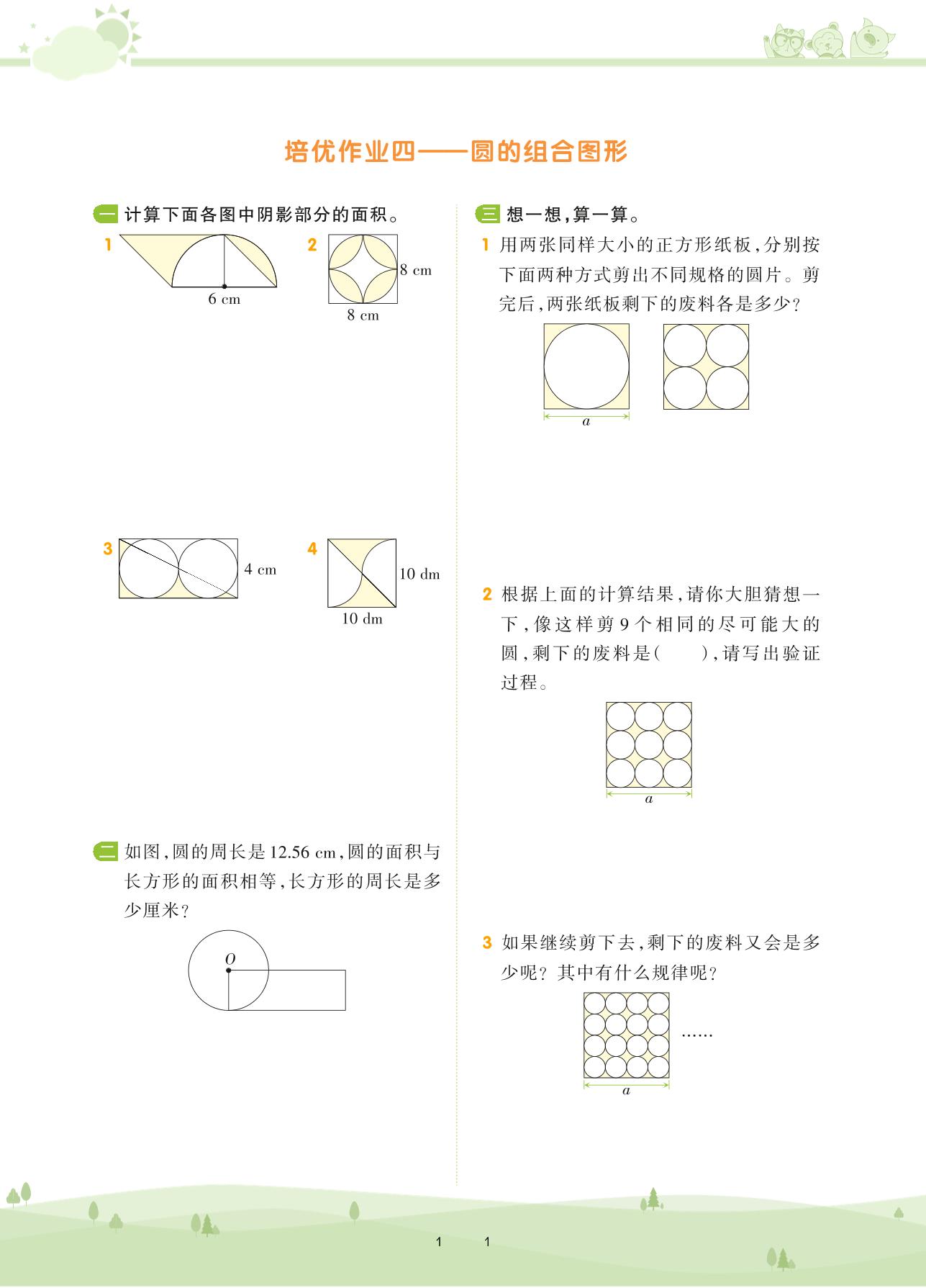 2020上册六年级数学北师版 第一单元 圆——培优作业四——圆的组合图形