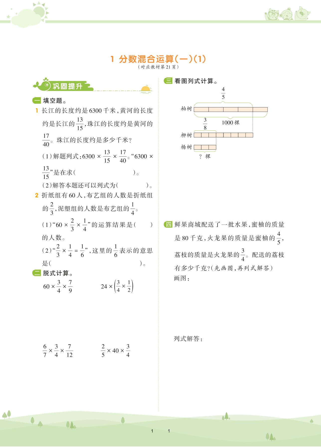 2020上册六年级数学北师版 第二单元 分数混合运算——1 分数混合运算(一)(1)