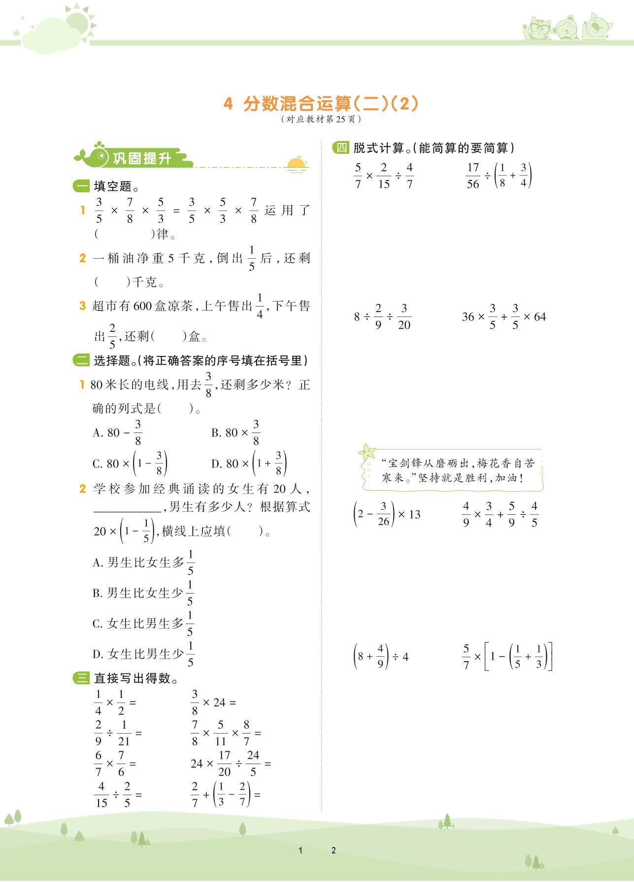 2020上册六年级数学北师版 第二单元 分数混合运算——4 分数混合运算(二)(2)
