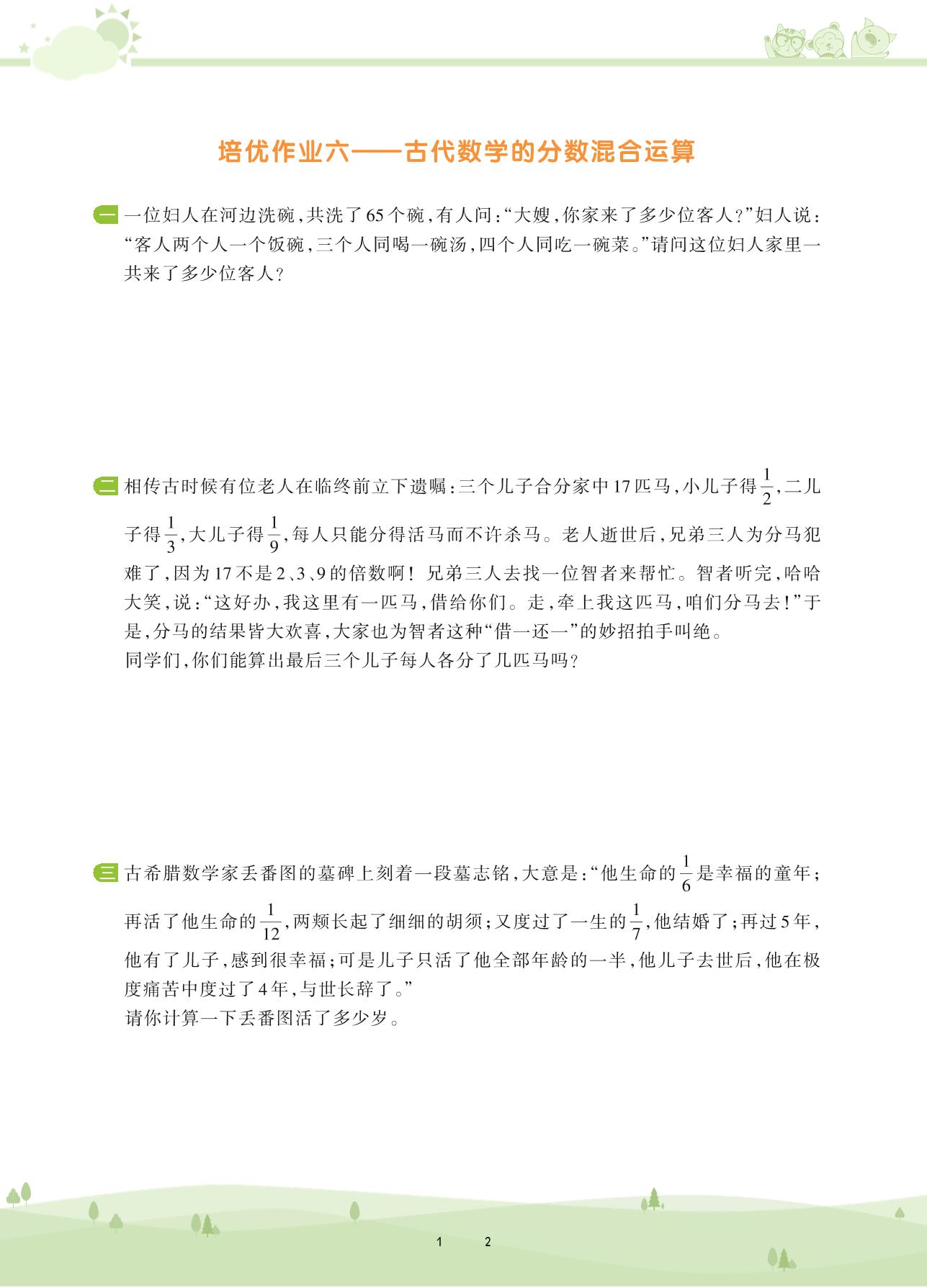 2020上册六年级数学北师版 第二单元 分数混合运算——培优作业六——古代数学的分数混合运算