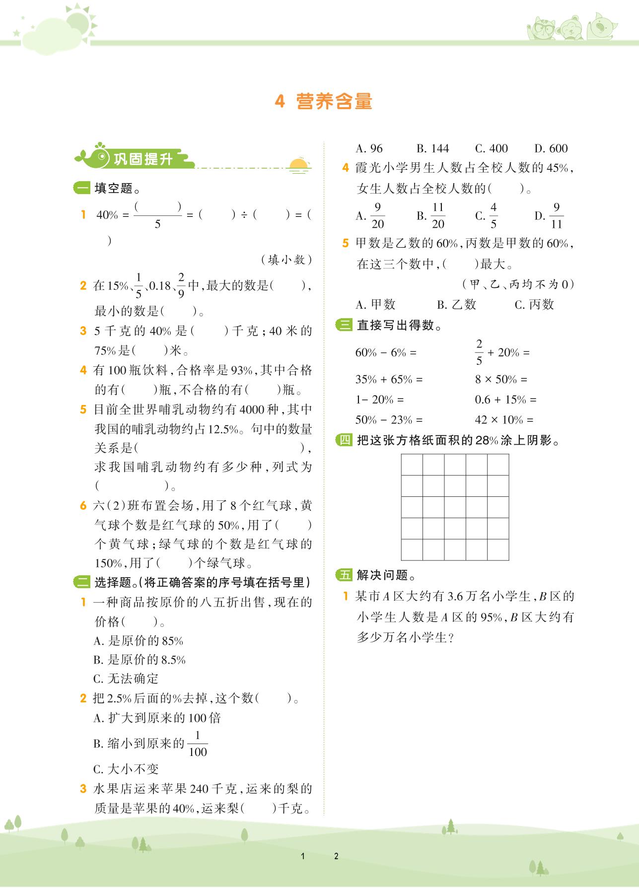 2020上册六年级数学北师版 第四单元 百分数——4 营养含量