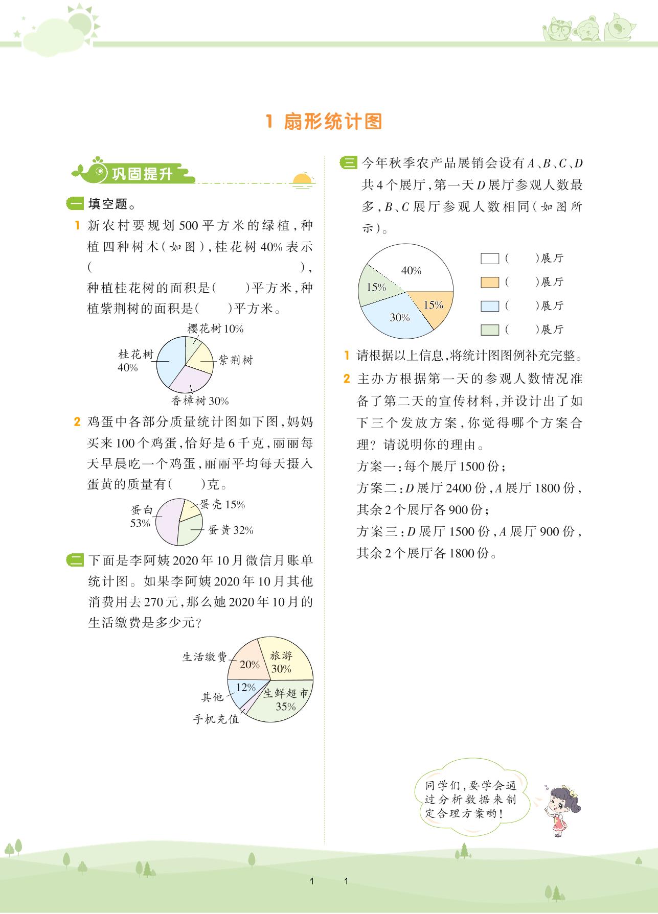 2020上册六年级数学北师版 第五单元 数据处理——1 扇形统计图