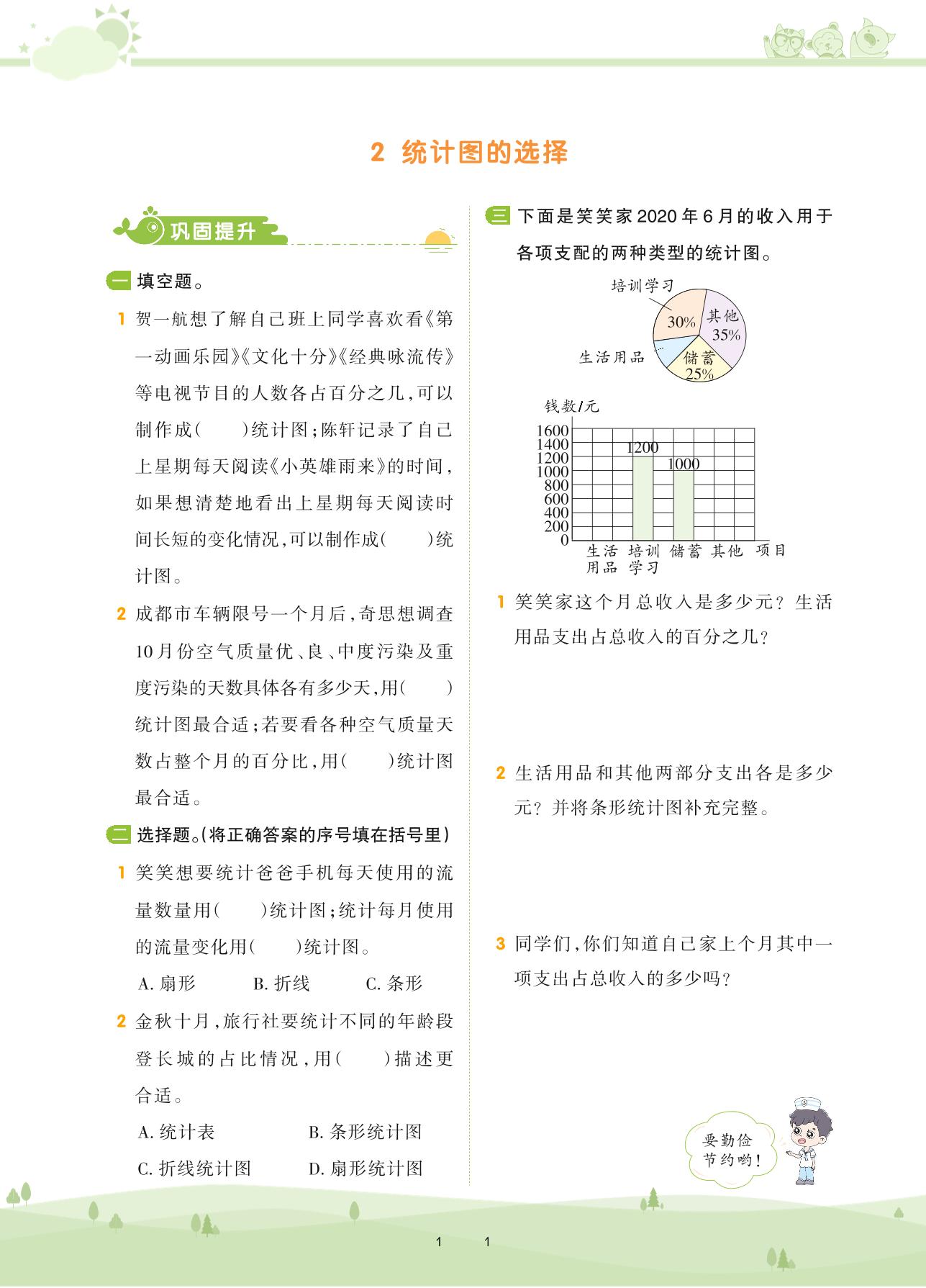 2020上册六年级数学北师版 第五单元 数据处理——2 统计图的选择